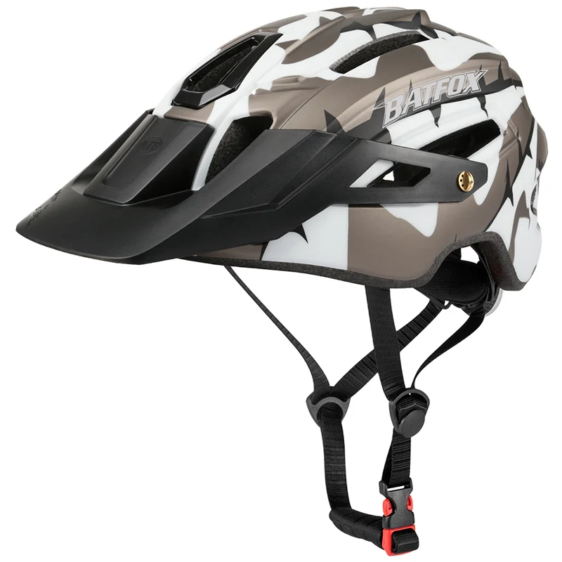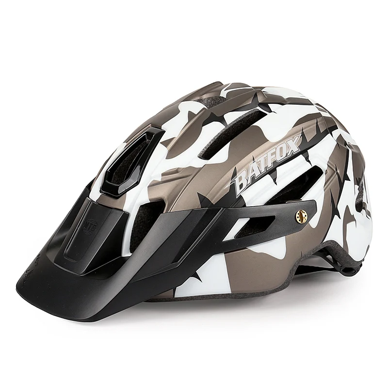 Шлем горный велосипедный BATFOX, белый Камуфляжный, со съемными полями, для мужчин и женщин