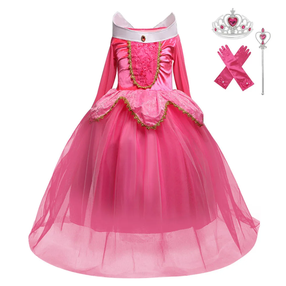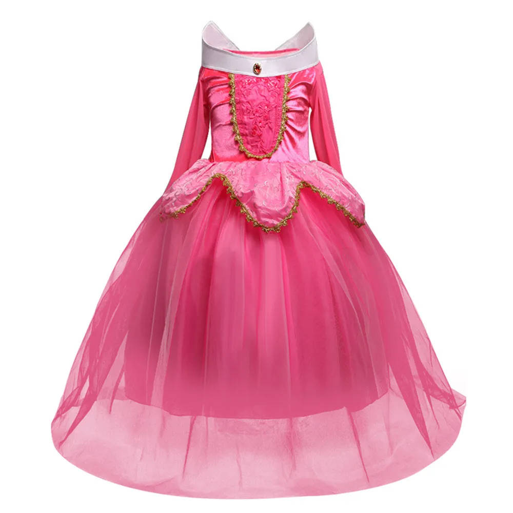 Авроры для девочек платье Спящая красавица карнавальный костюм платья принцессы с принтом розовый маскарадный костюм на Хеллоуин; Платье для дня рождения, вечерние платья для девочек