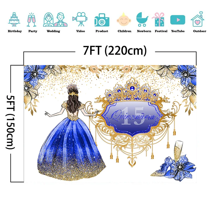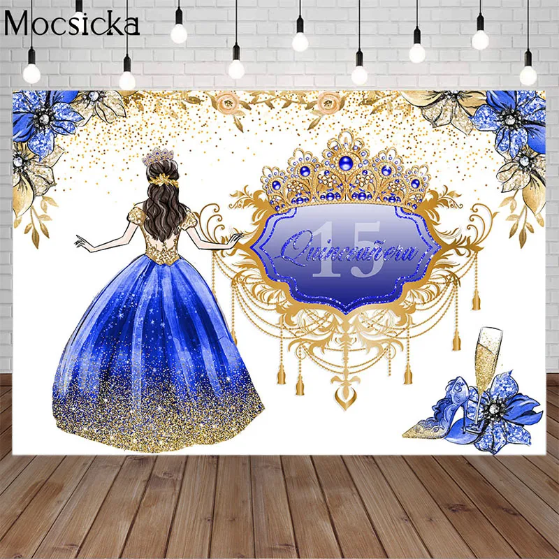 Фон для фотосъемки с изображением принцессы Quinceanera небесно-гол...