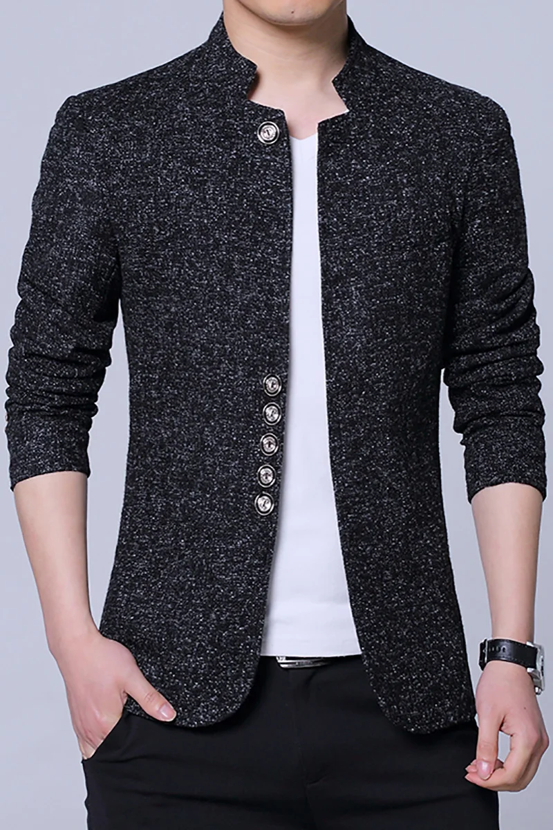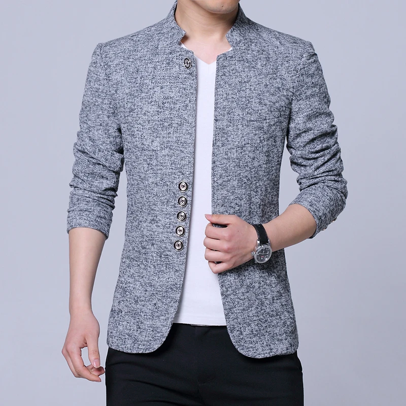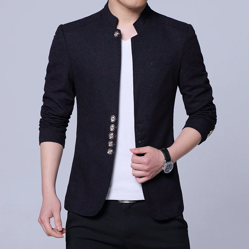 Мужской приталенный пиджак с воротником-стойкой, Повседневный шерстяной Блейзер большого размера в китайском стиле, 2022