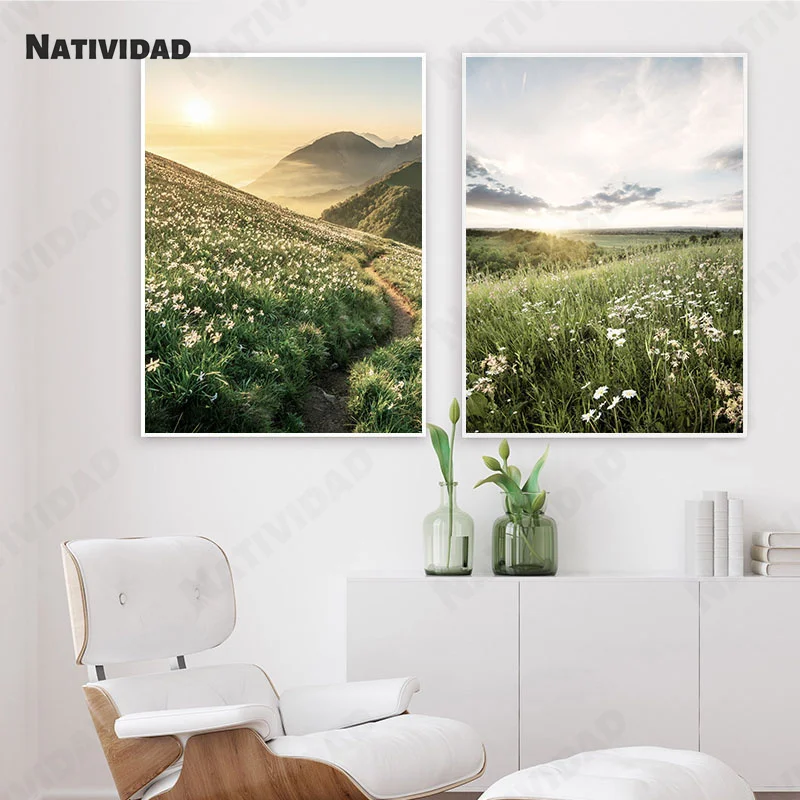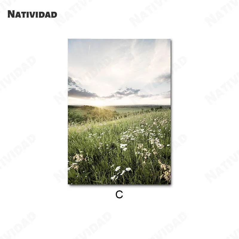 Реалистичные пейзаж картины с изображением подсолнуха путь плакат с восходом солнца Nordic печать современного искусства стены украшения Light Studio украшения