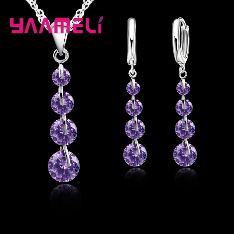 Женский свадебный комплект ювелирных изделий из стерлингового серебра 925 пробы с кисточкой и кулоном из кубического циркония, набор сережек, свадебный подарок