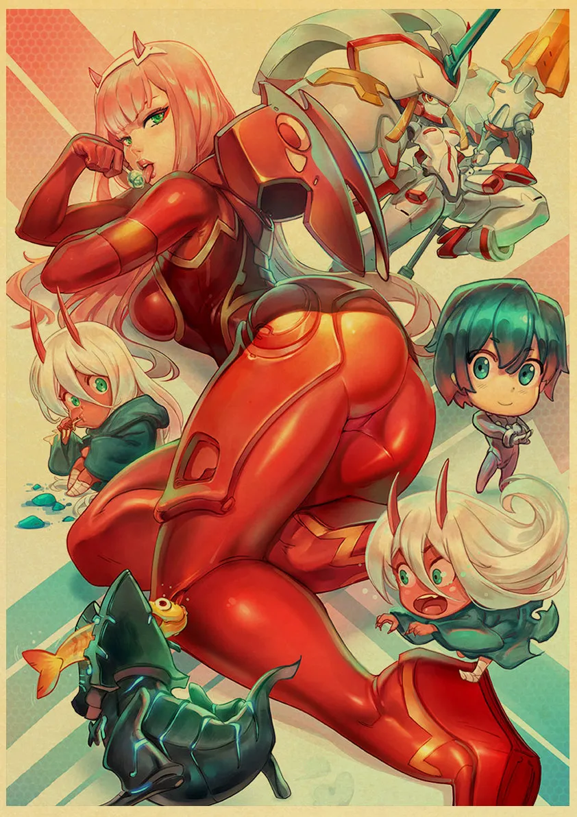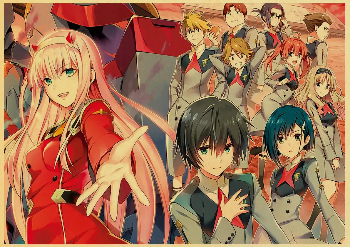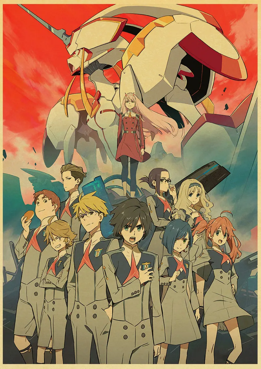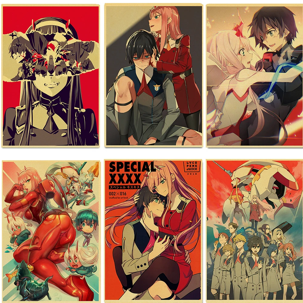 Ретро-постеры DARLING in the FRANXX с японским аниме, постер из крафтовой бумаги для гостиной, бара, декоративные наклейки на стену