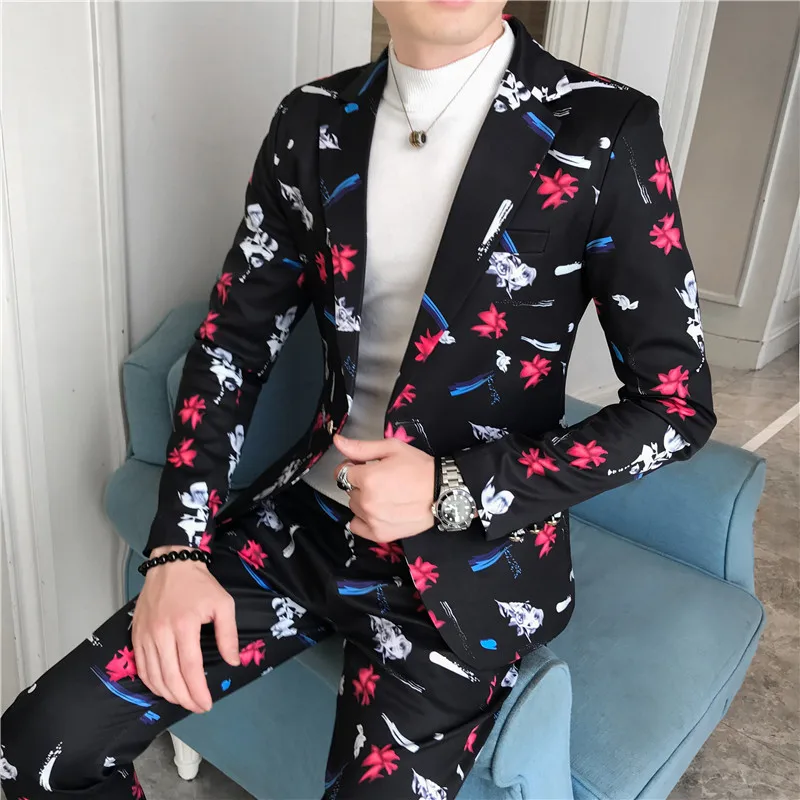 Новинка 2022, модный мужской повседневный деловой костюм с цветочны...