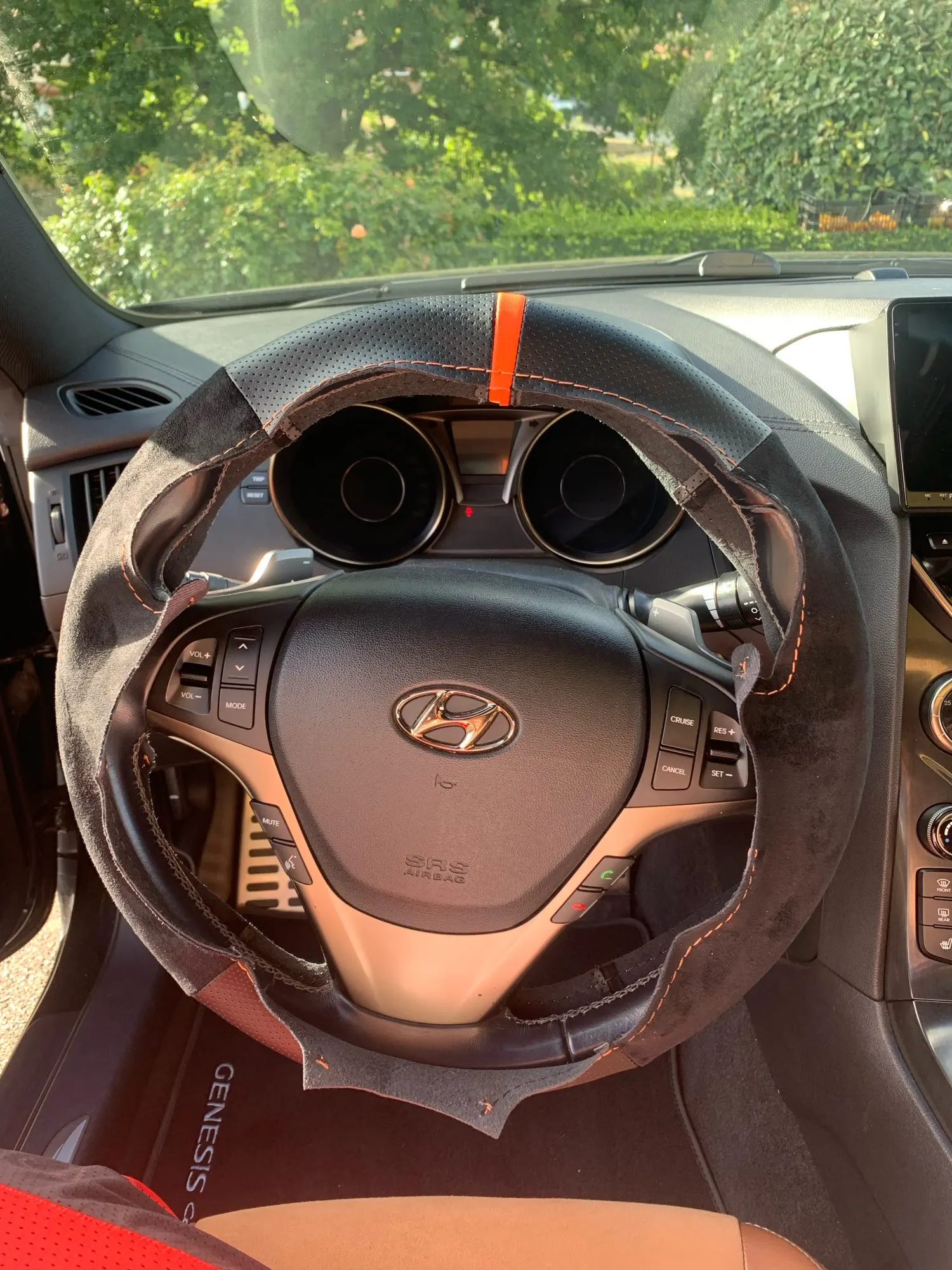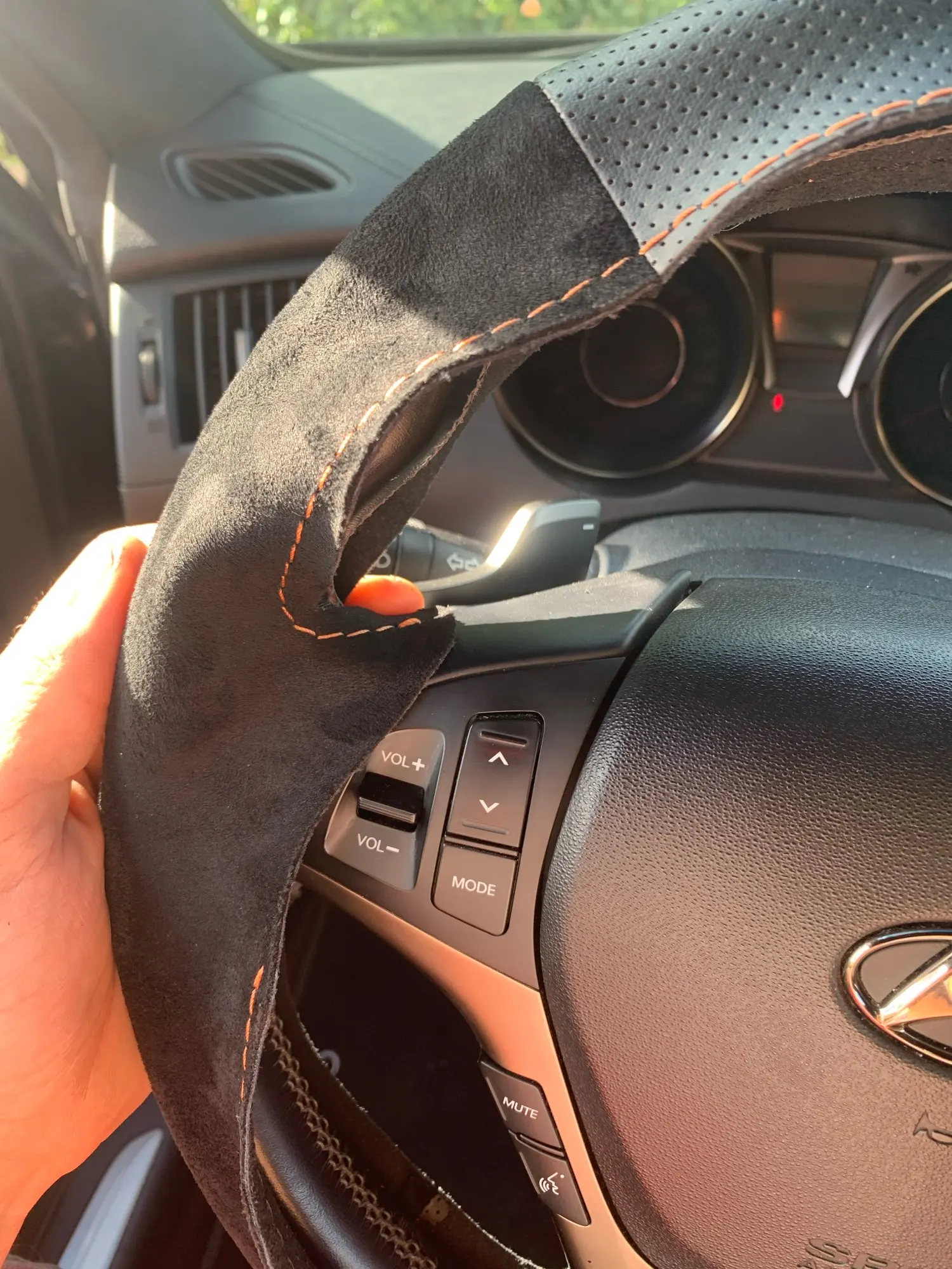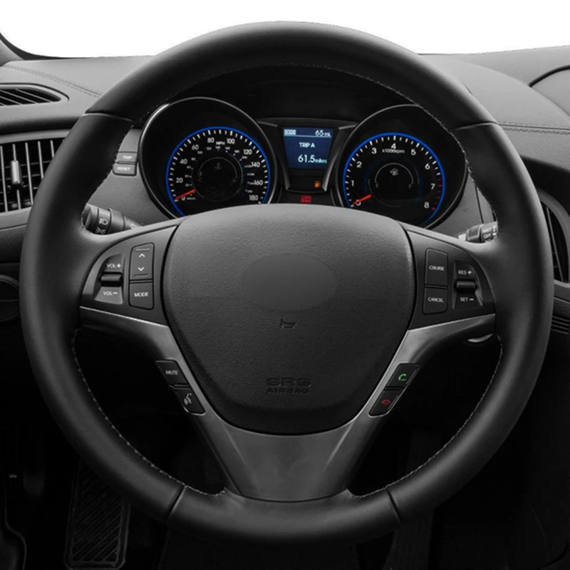 Чехлы рулевого колеса автомобиля DIY черного цвета из натуральной кожи и замши, для Hyundai генезис купе 2010 2011 2012 2013 2014 2015-2016