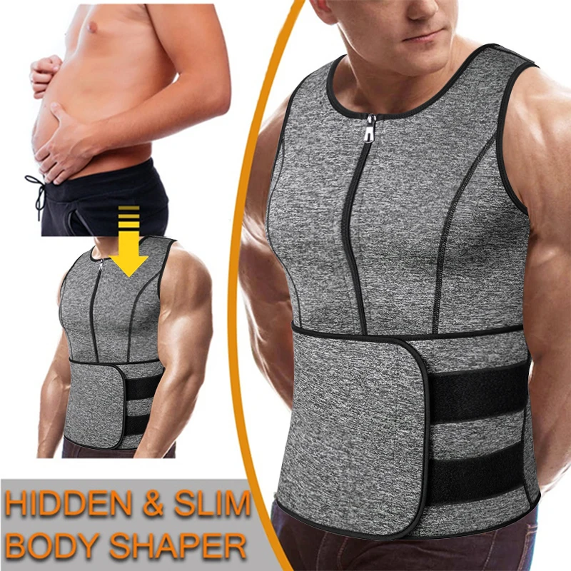 Неопреновый костюм для сауны для мужчин, корсет для тренировки талии, майка для сауны на молнии, Корректирующее белье для похудения с регулируемой майкой