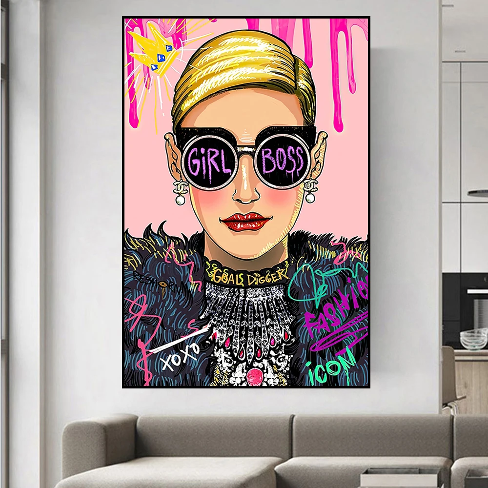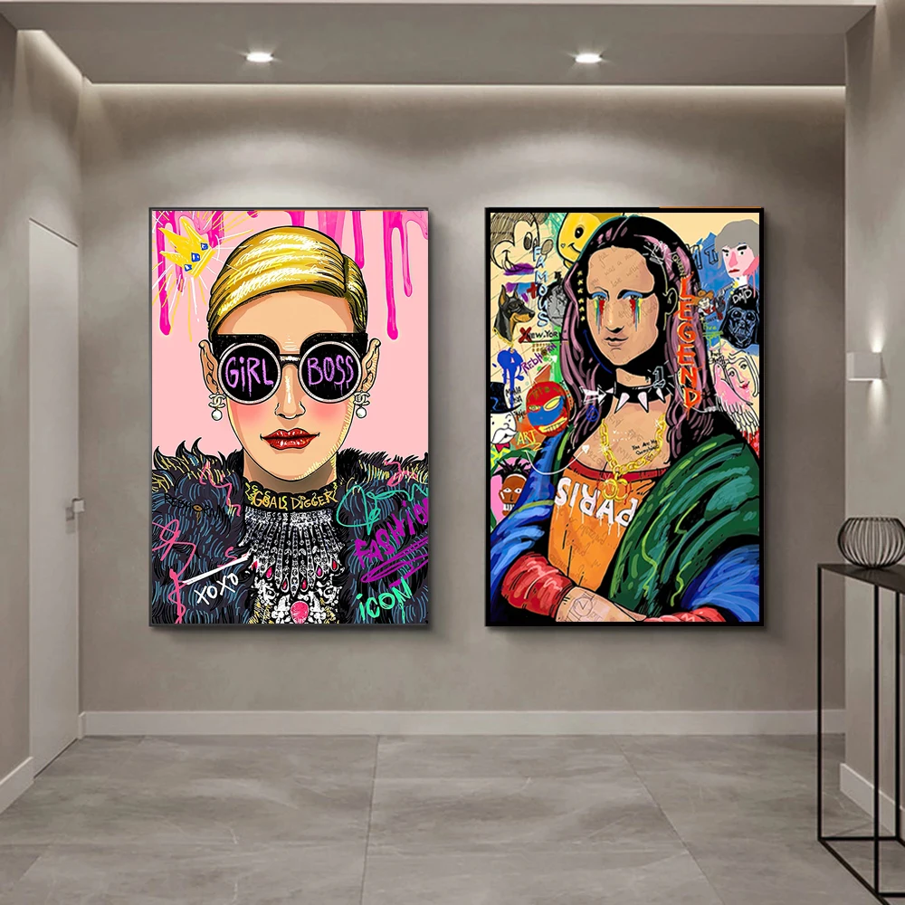 Граффити поп-арт Женская Картина на холсте Современная Настенная фо...