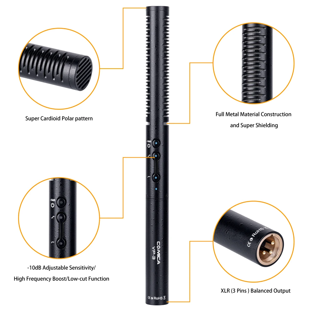 CVM-VP3 супер-кардиоидный конденсаторный дробовик микрофон для камеры/видеокамеры