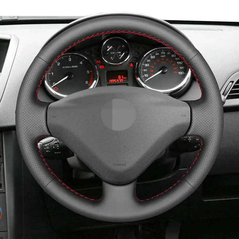 Сшитая вручную Черная мягкая искусственная кожа Чехол рулевого коле...