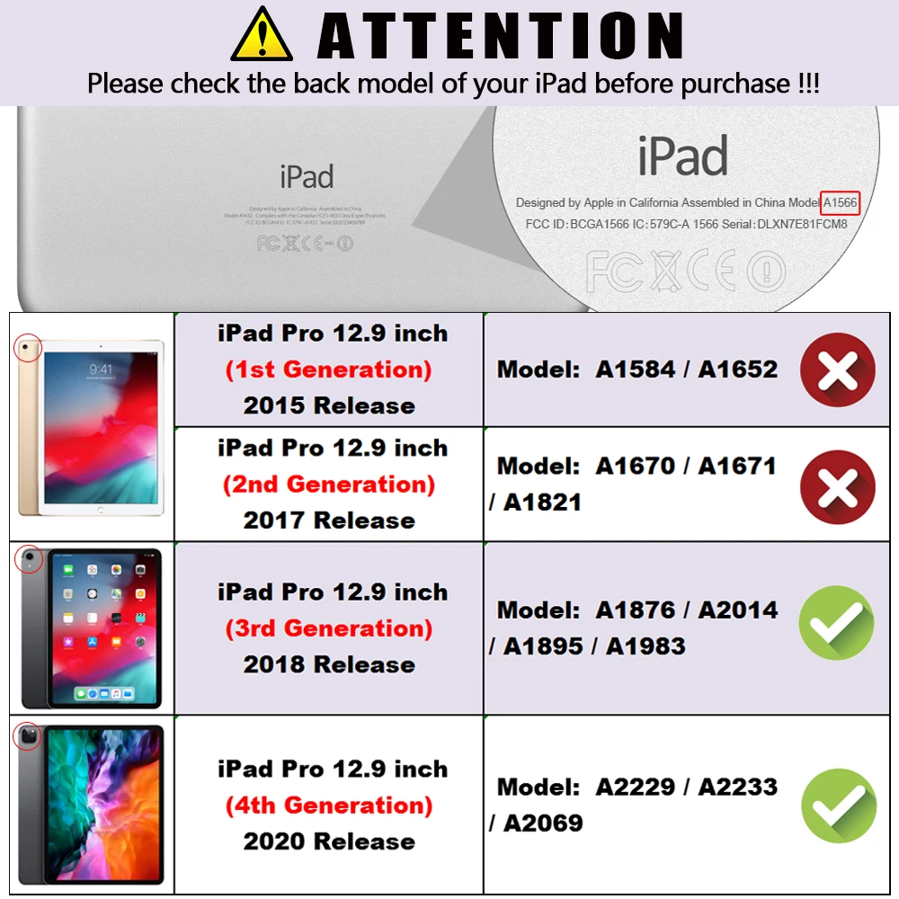 1. Только эта ссылкаДля iPad Pro 12,9 дюйма 4-го поколения 2020 выпуска модели A2229 / A2233 / A2069И Pro 12,9 3-го поколения 2018 модель A1876 /A2014 /1895/a1983.,Не для iPad Pro 12,9 дюйма версии 2015/2017.