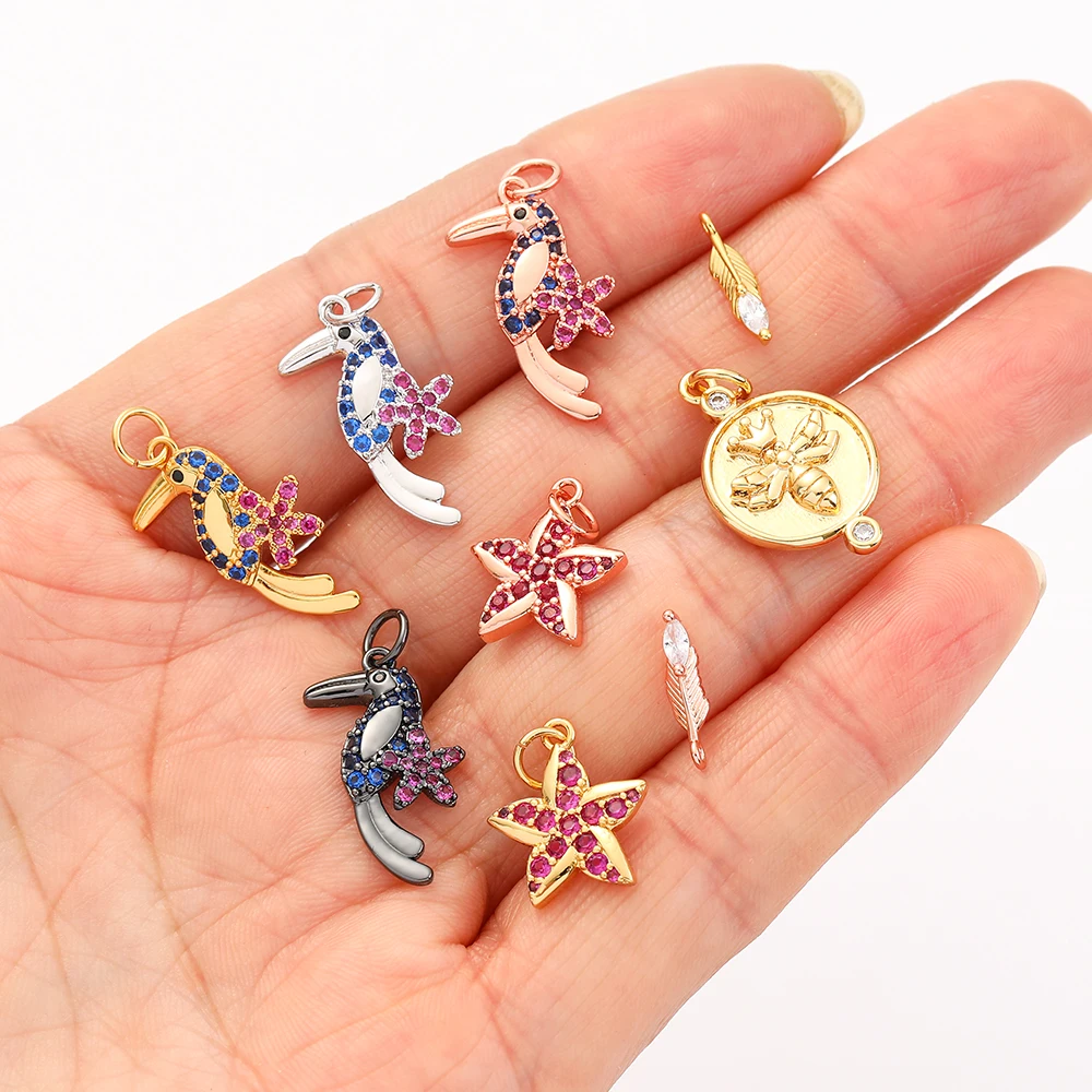 Подвески в виде птицы для изготовления ювелирных изделий, объемные золотые подвески в виде животных, подвески сделай сам, дизайнерские подвески для сережек, ожерелья, браслета, медь