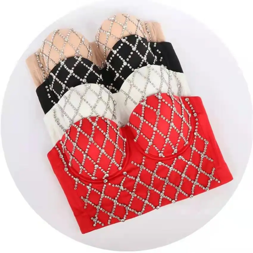 Высококачественные красные топы с бисером и бриллиантами, женский сексуальный корсет, укороченный топ, знаменитости модная одежда для вечеринок