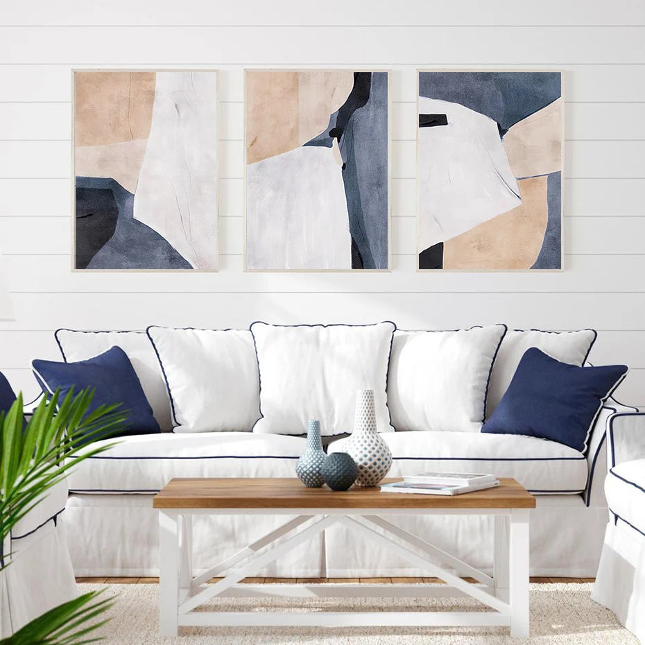 Винтажный абстрактный синий бежевый эскиз геометрические постеры Картина на холсте художественная картина для гостиной домашний декор
