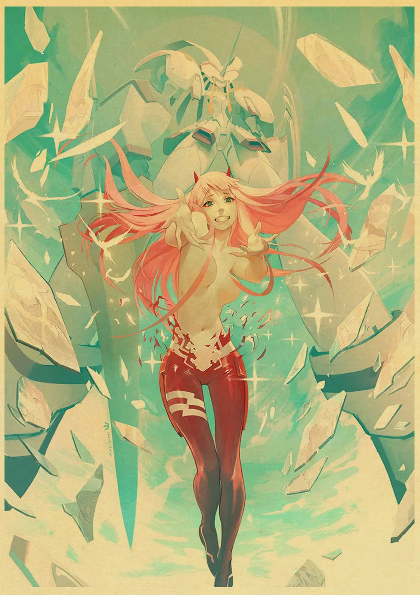 Ретро-постеры DARLING in the FRANXX с японским аниме, постер из кра...