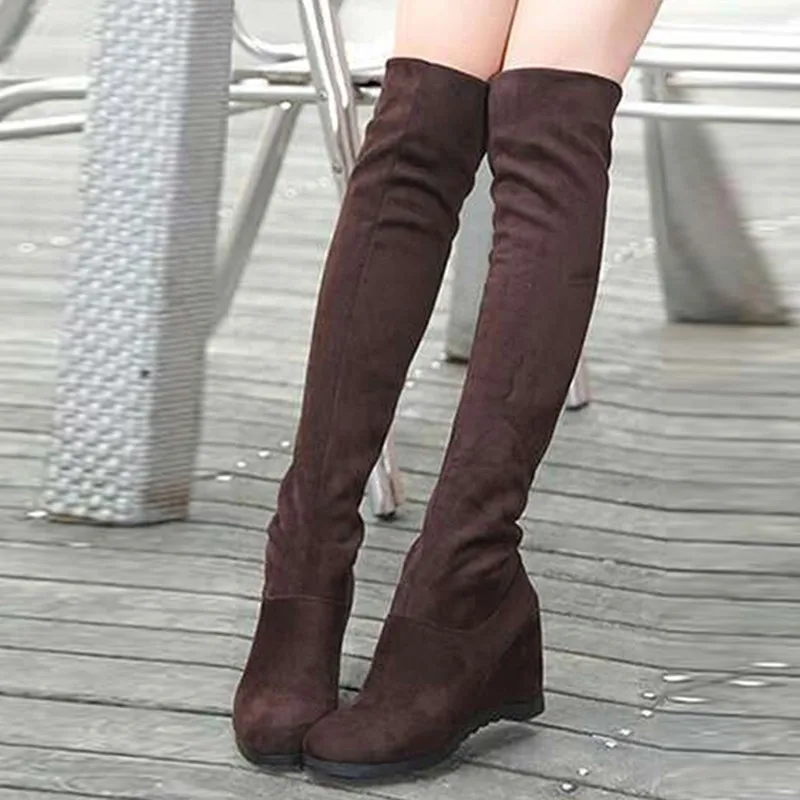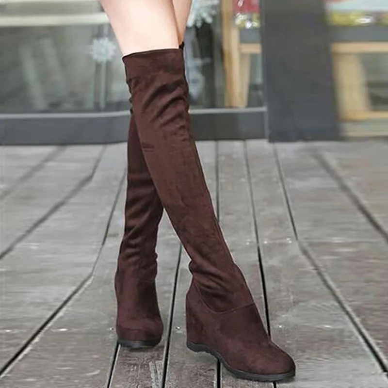 Женские сапоги; Коллекция 2021 года; Сезон осень-зима; Модные женские сапоги на плоской подошве; Замшевые высокие сапоги выше колена; ER875876