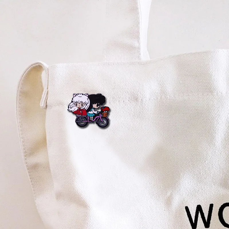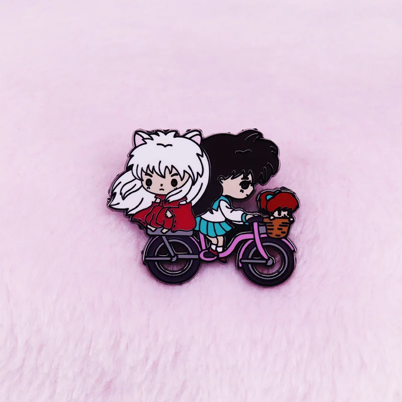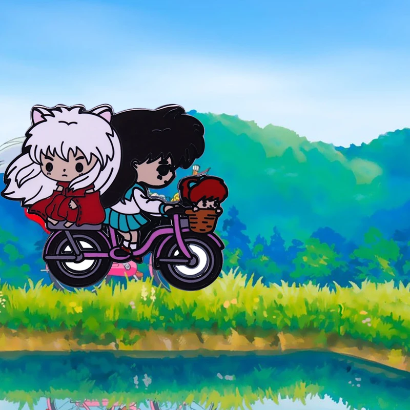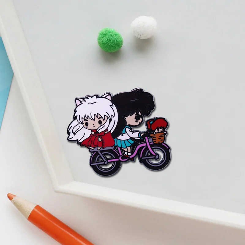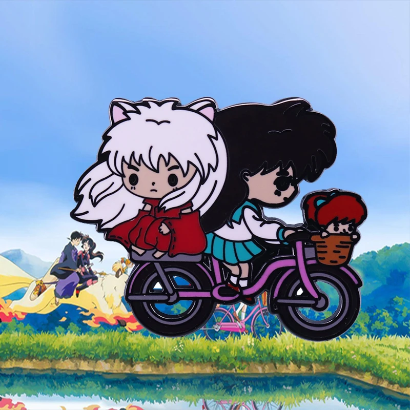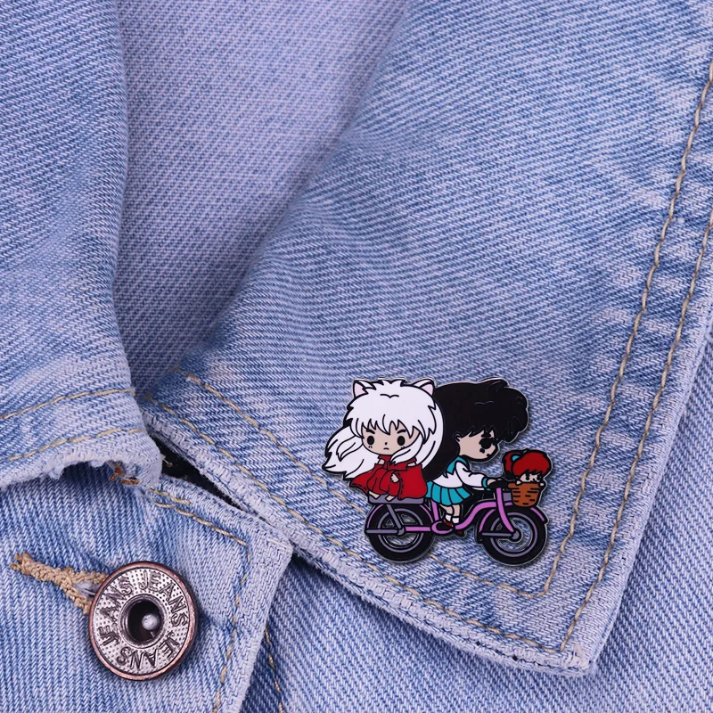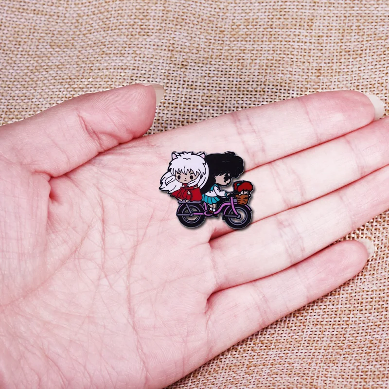 Велосипедный спорт Inuyasha и Кагоме брошь в виде милого героя аниме пара езда на велосипеде Приключения эмали штырь подарок для парня, девушки