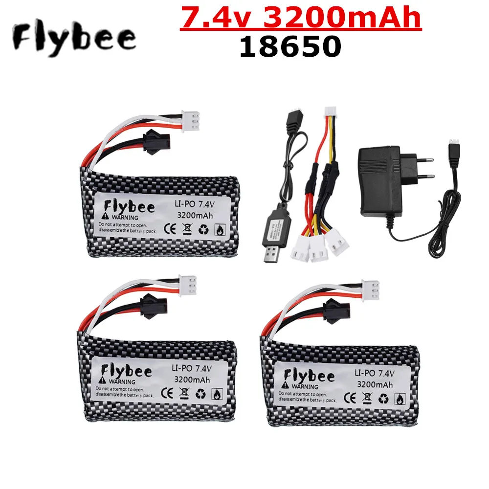 Аккумулятор Lipo 7,4 в 3200 мАч для WPL MN99S, D90, U12A, S033g, Q1, H101, Ру лодок, автомобилей, танков, дронов, запчасти 7,4 В, 18650, батарея с SM