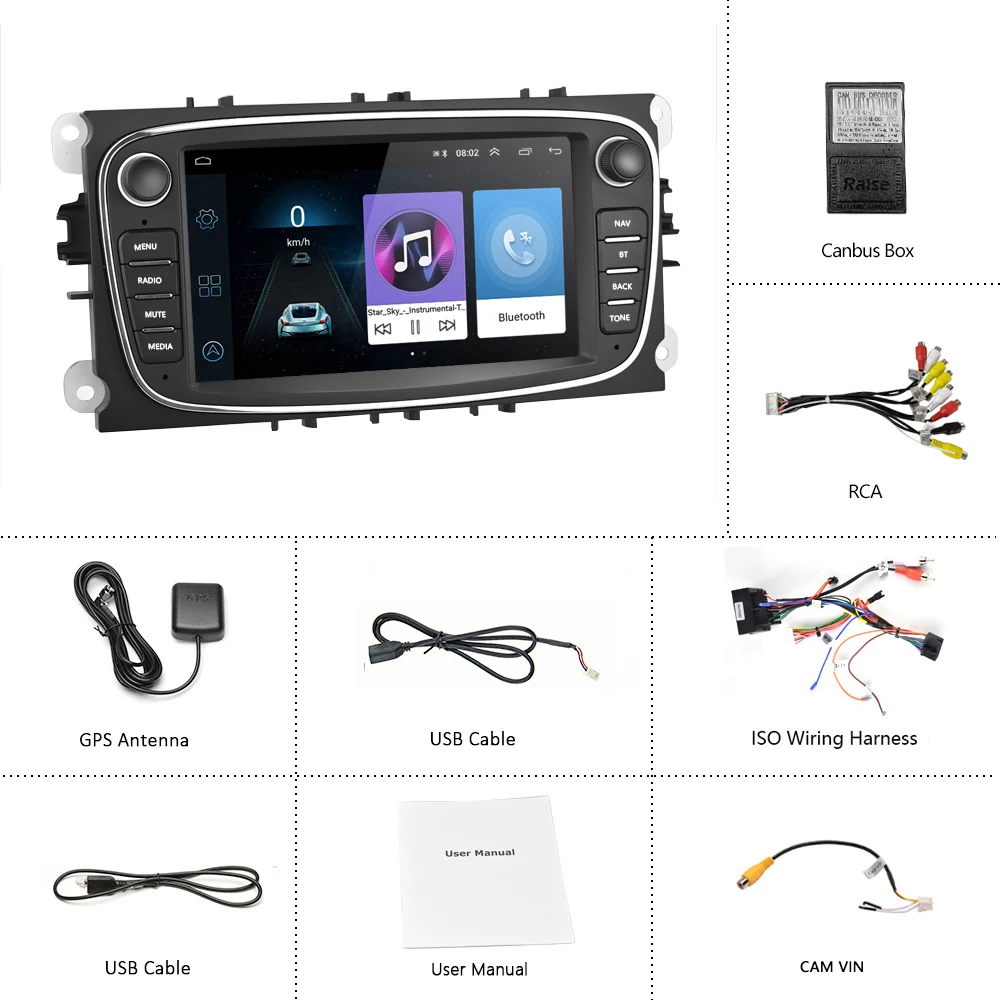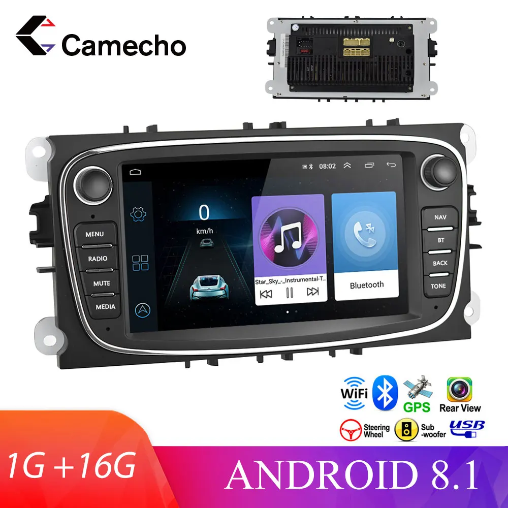 Автомобильный радиоприемник Camecho, Android 8,1, 2 Din, 7 дюймов, GPS-навигация, Wi-Fi, MP5, Bluetooth, FM, для Ford Focus, Mondeo, C-MAX, Galaxy II, Kuga
