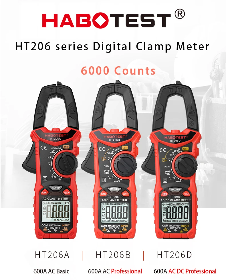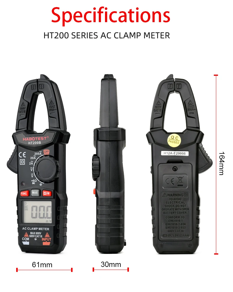 Мультиметр-зажим HABOTEST HT200, профессиональный цифровой ампермет...