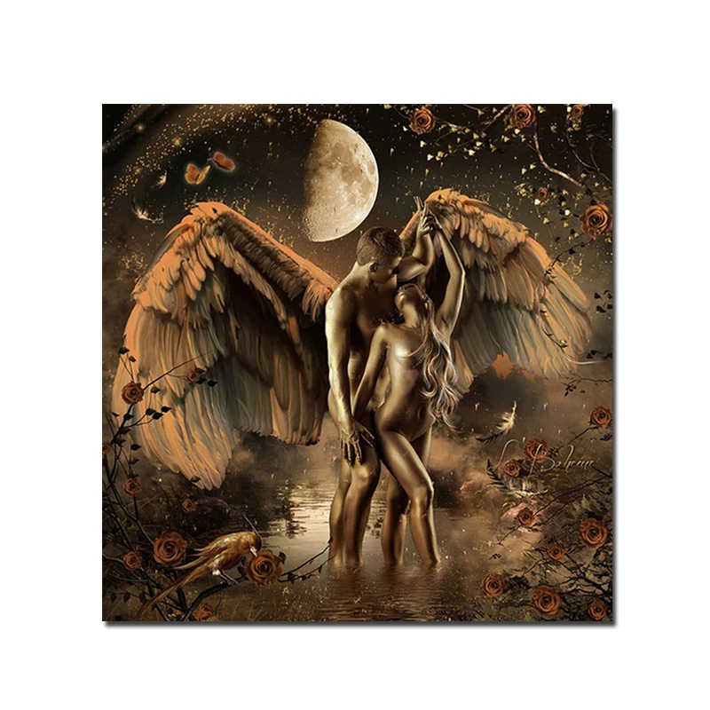 Африканское искусство Ангел Пары Черное золото голая картина маслом на холсте плакаты и принты скандинавский гостиной настенная живопись
