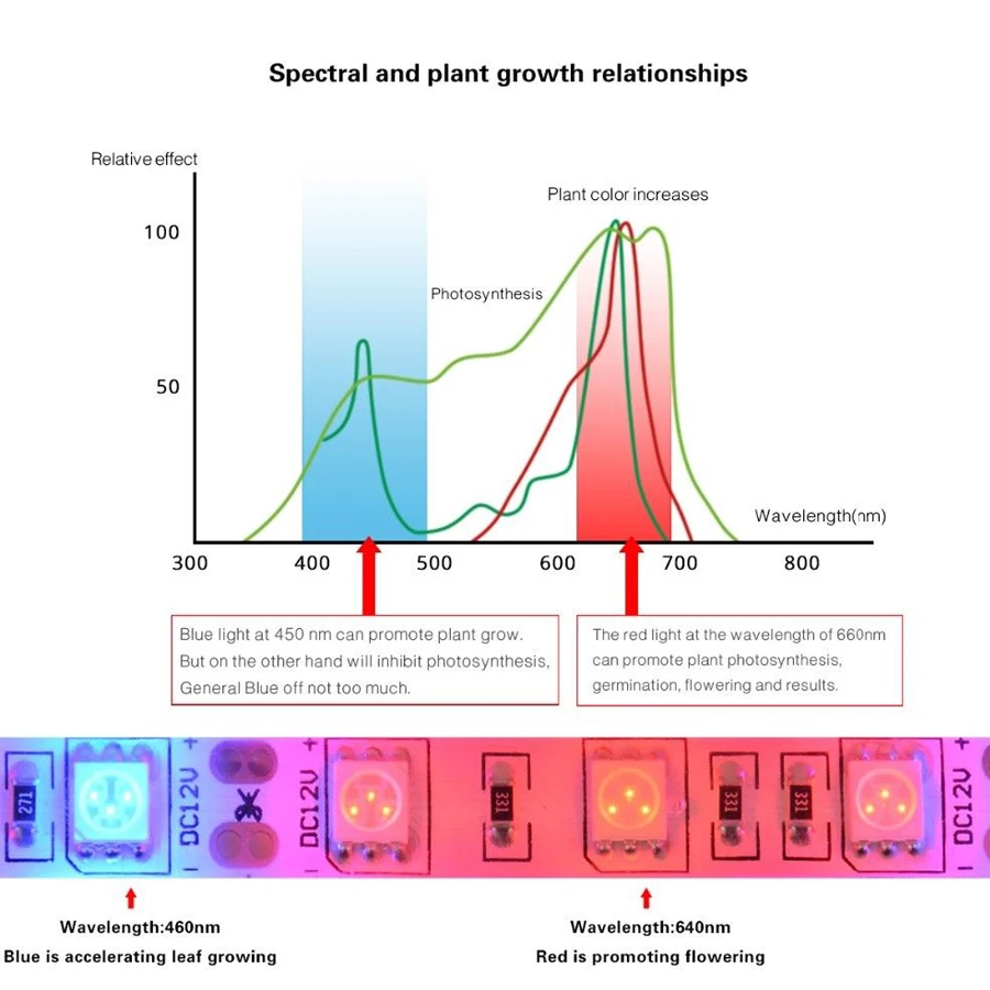 Тип: светодиодный светильник для растений Водонепроницаемость: IP65/IP20 Светодиодный Тип: SMD 2835 Количество СВЕТОДИОДНЫЙ: 60 светодиодный/м Светильник Цвет: красный и синий (красный: синий = 3:1 или 4:1 или 5:1) Светодиодный Длина волны: Красный: 660нм; Синий: 450нм Напряжение: 5 В постоянного тока Длина: 0,5 м-5 м