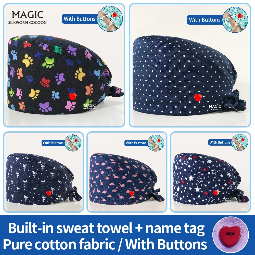 Шапка-медицинские шапочки для косметолога, мультяшный матовый принт...