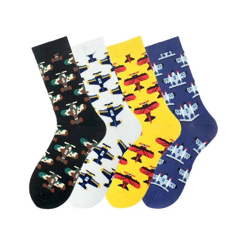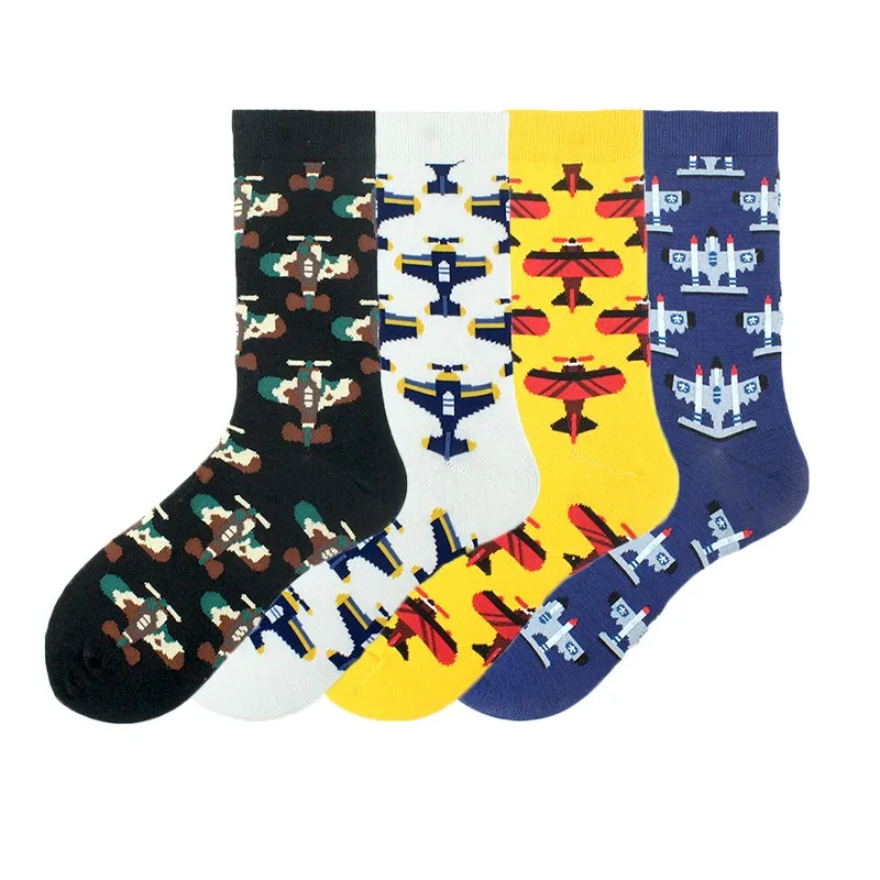 Женские носки из чесаного хлопка, повседневные, с мультяшным самоле...