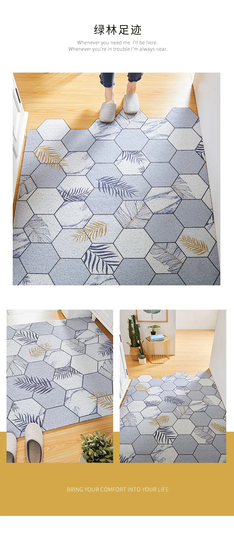 > Может быть настроен в соответствии с размером входа, пожалуйста, свяжитесь с нами, если вам нужно настроить. > Он изготовлен из экологически чистого материала и безвреден для людей. > Подошва изготовлена из противоскользящего материала, чтобы предотвратить скольжение коврика и защитить вашу безопасность, верхний материал может поглощать влагу от обуви, чтобы сделать полы чистыми и сухими, также удалите пыль, грязь, снег и т. д. > Можно свободно разрезать любые формы, которые вы хотите, и подходит для внутреннего и наружного входа, прихожей, гостиной, спальни, ванной комнаты и т. д. > Толщина составляет около 8 мм, он может полностью лежать на полу и не будет мешать открыванию и закрытию двери. > Когда коврик заполнен частицами грязи, вы можете просто очистить его с помощью пылесоса, или вы можете использовать садовый шланг на краску, затем дайте коврику полностью высохнуть на воздухе перед следующим использованием.
