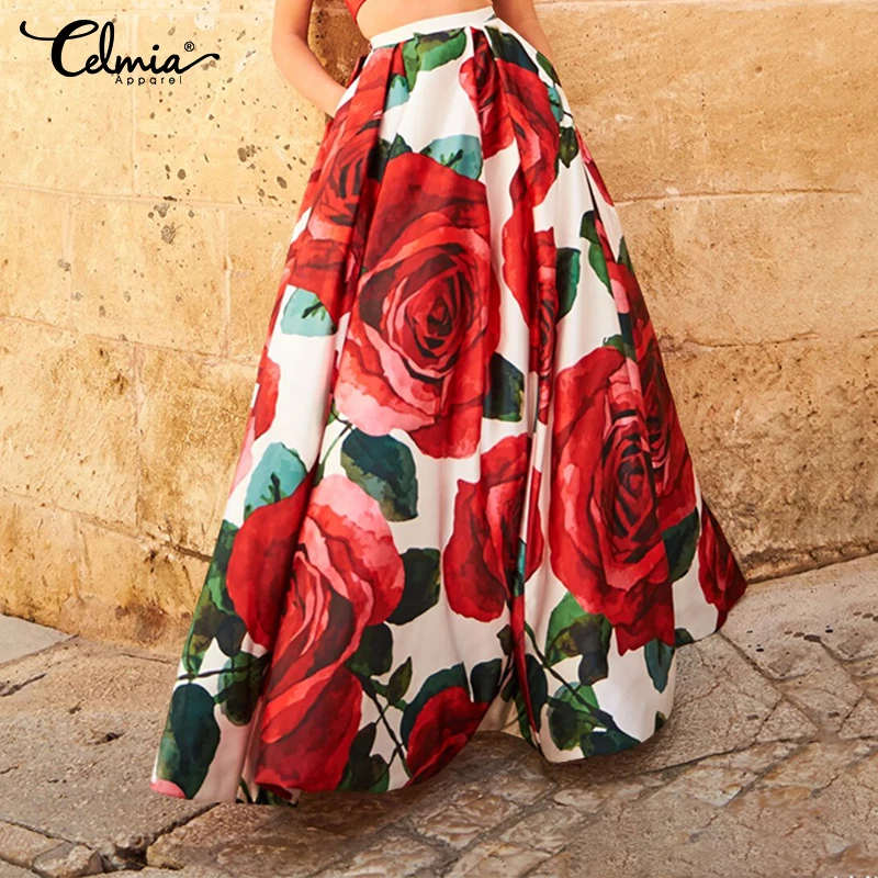 Женская длинная юбка Celmia в богемном стиле с цветочным принтом, модная повседневная свободная пляжная юбка с высокой талией для вечеринок, 2022