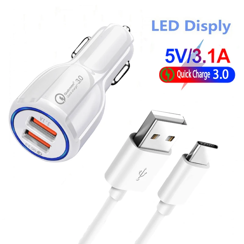 Автомобильное зарядное устройство QC3.0, быстрая зарядка с 2 портам...