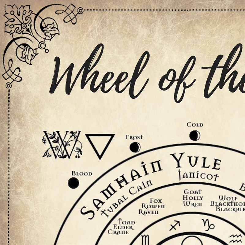 Колесо года книга тени страниц Винтаж плаката фоновая фотография в стиле ретро художественный холст для живописи отпечатки Спальня Декор в гостиную