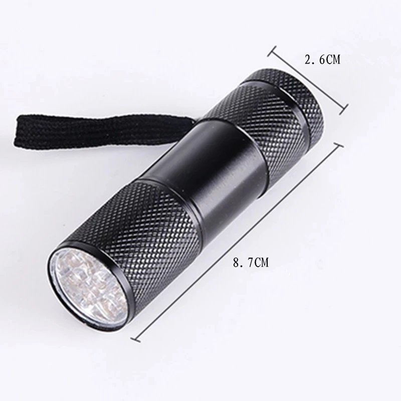 Посылка входит: Тип A: 1 УФ-фонарик (Батарея в комплект не входит) Тип B: УФ-фонарик 1X9 светодиодов (Батарея в комплект не входит)