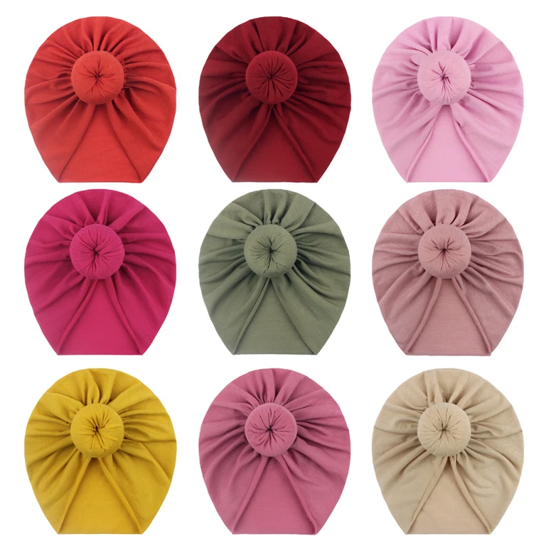 Детские аксессуары для новорожденных, малышей, для детей, для малышей, для мальчиков и девочек, кепки тюрбан хлопковые Beanie шапки Теплые мягкие кепки одноцветные, с узелком из мягкого кашемира с запахом