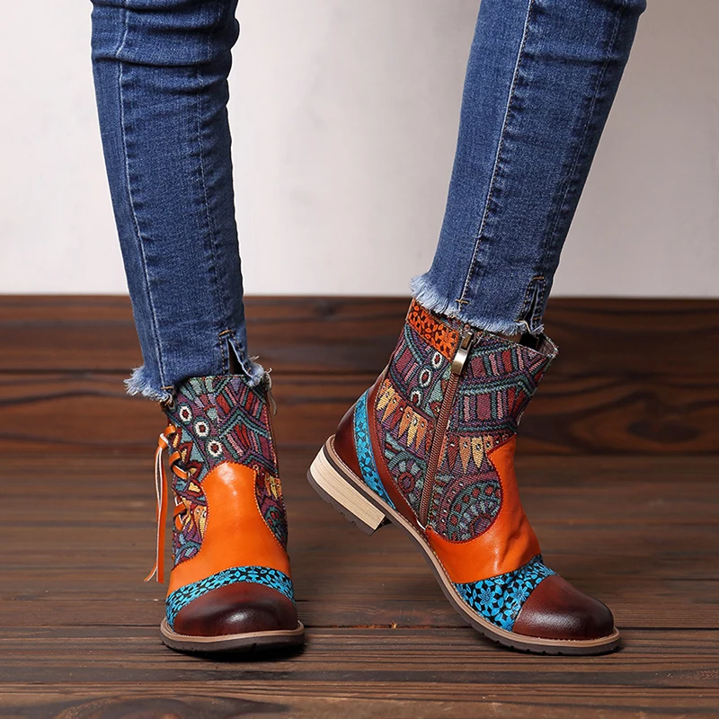 Ботинки женские в богемном стиле, из искусственной кожи, на молнии