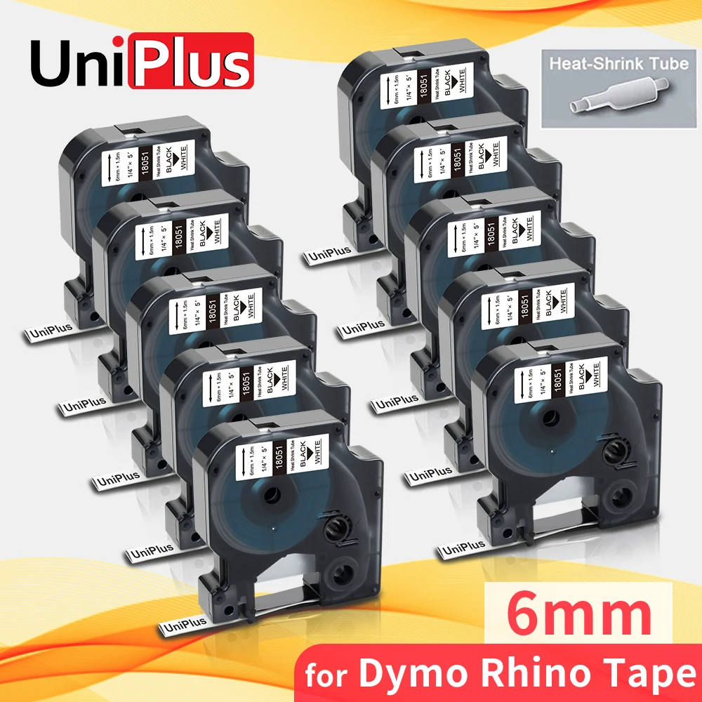 Термоусадочная трубка UniPlus 10PK, устройство для изготовления этикеток 18051, черный на белом, для Rhino 1000, 3000, 5200, 600, 6 мм