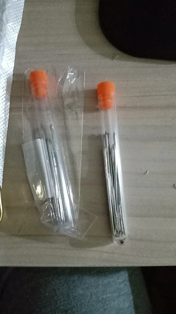 Отличные иглы, кончики не острые, не расщепляют петлю, ушки достаточно большие. Удобная емкость для хранения.