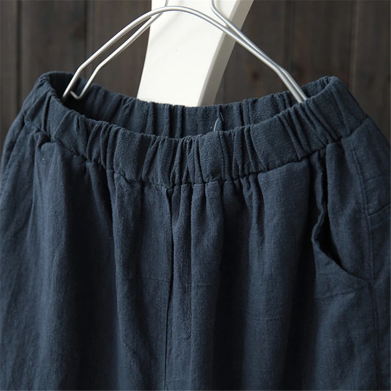 Брюки-Капри женские хлопково-льняные с эластичным поясом