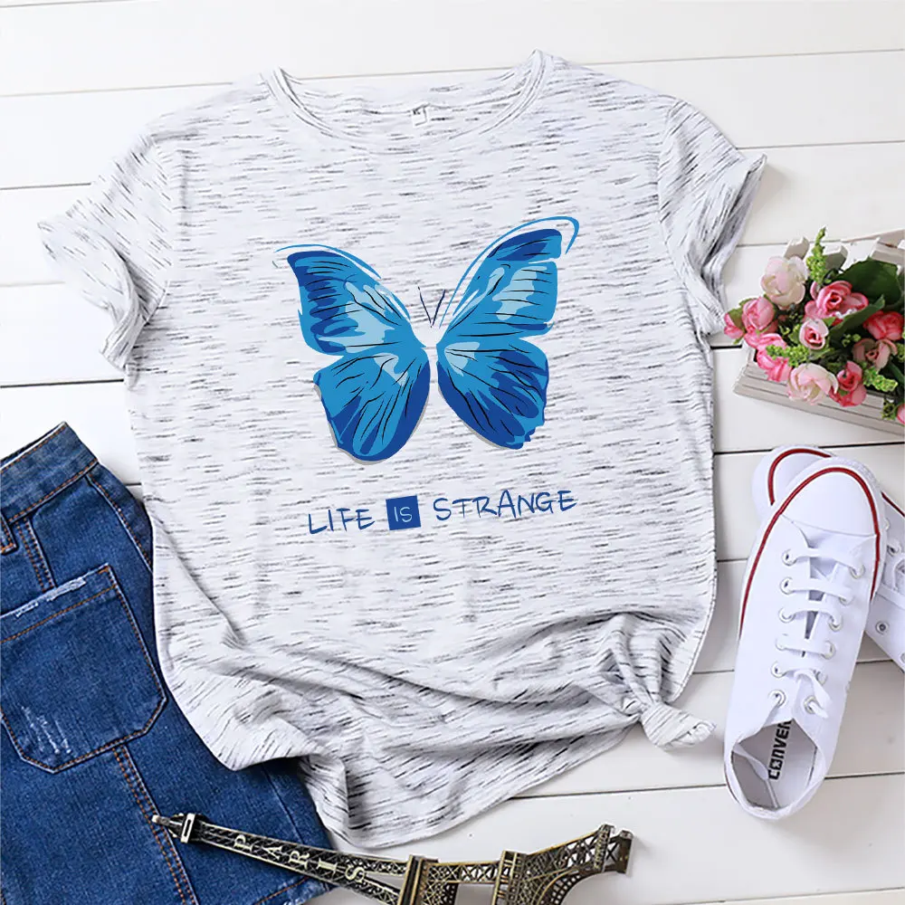 Женская футболка JFUNCY размера плюс из 100% хлопка с коротким рукавом, повседневная женская футболка с принтом бабочки, женские летние свободные топы