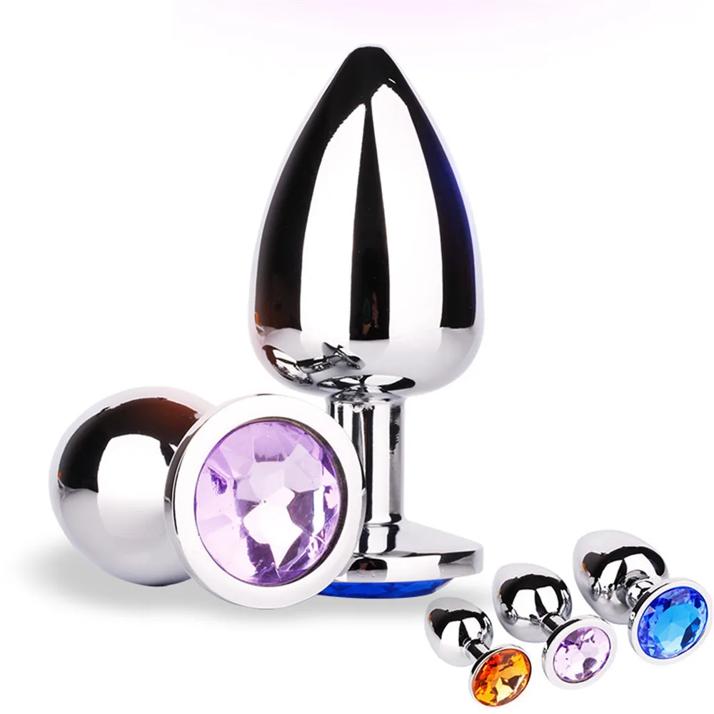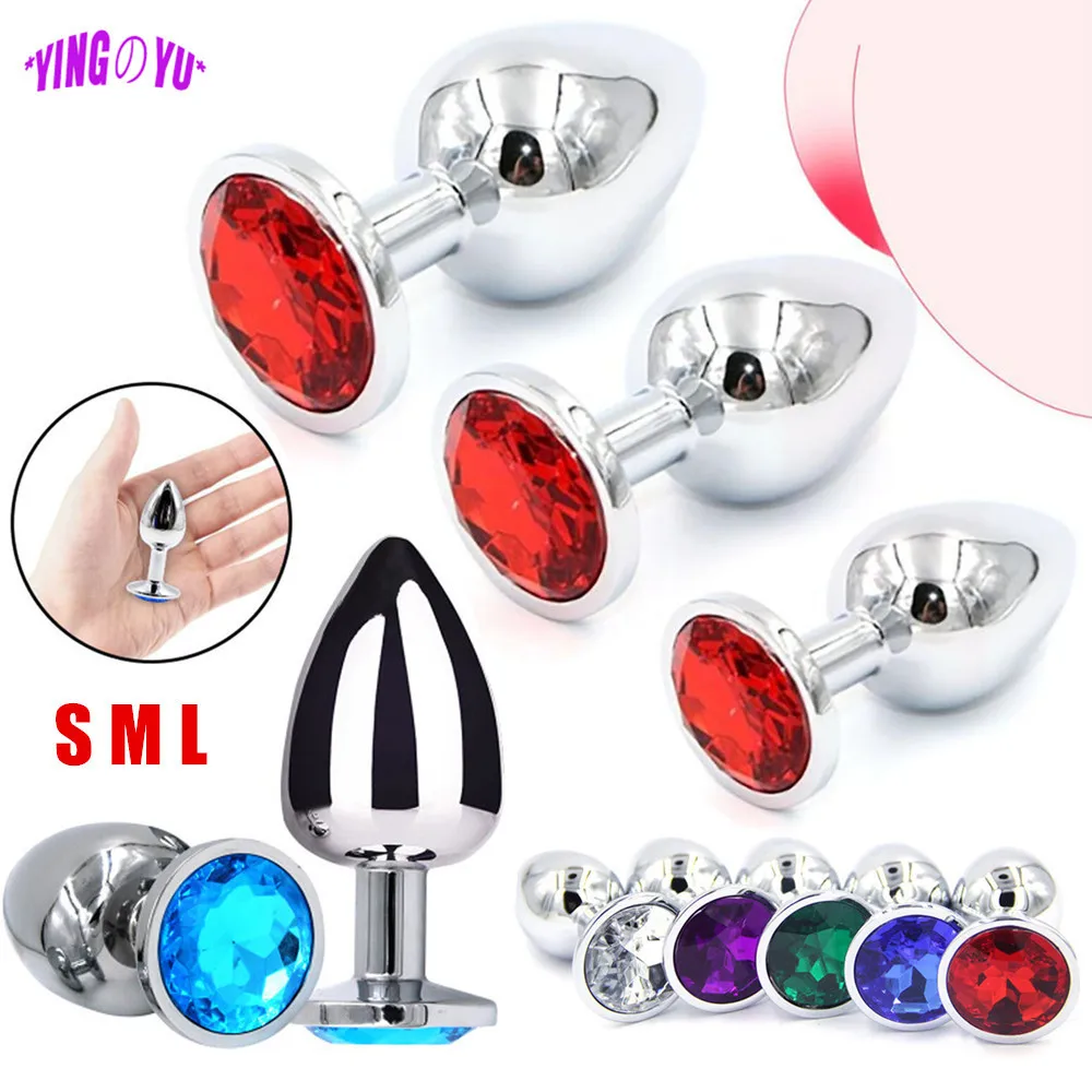 Анальная пробка, интимные игрушки для пар, взрослые из нержавеющей стали, гладкая стальной фаллоимитатор, анальная пробка с кристаллами, ювелирное изделие, Эротические товары Sexshop 18