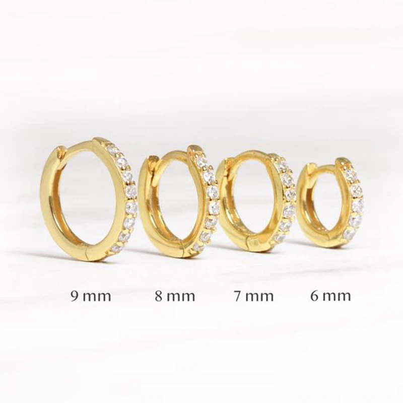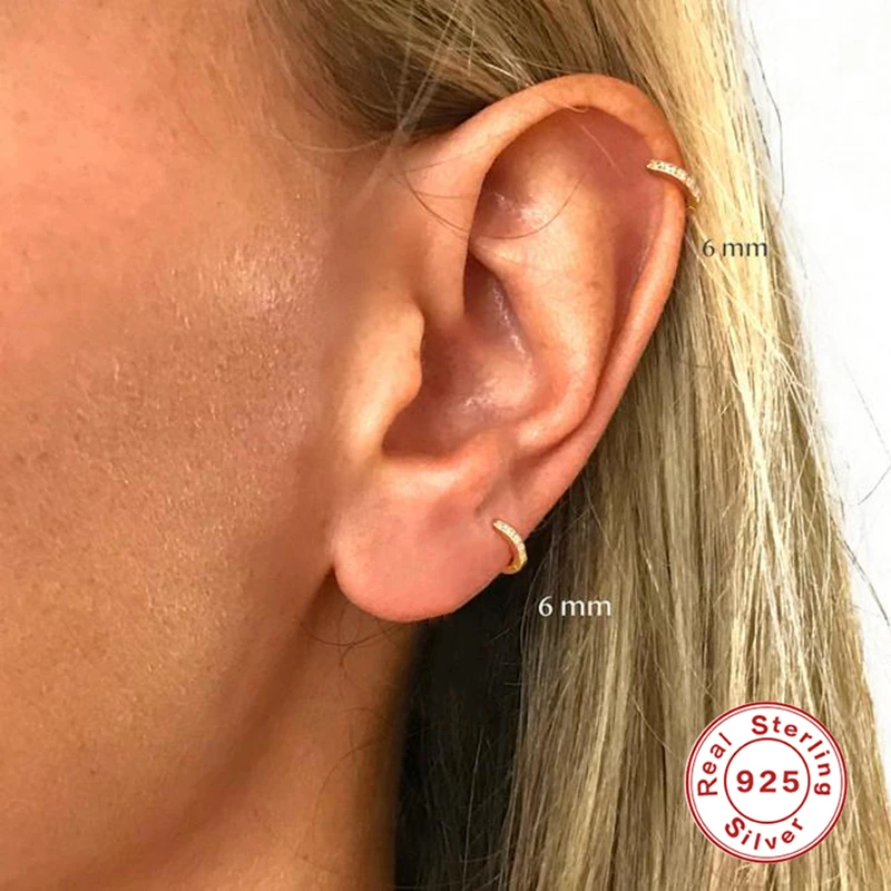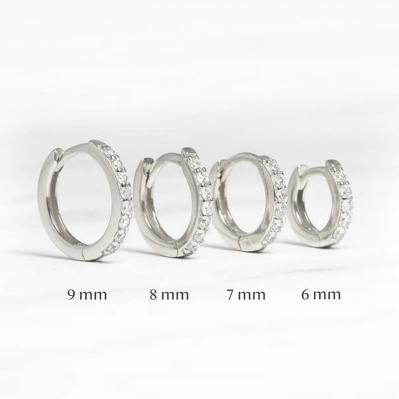 Женские серьги-кольца с цирконом для пирсинга, 6, 7, 8, 9 мм, серебро 925 пробы