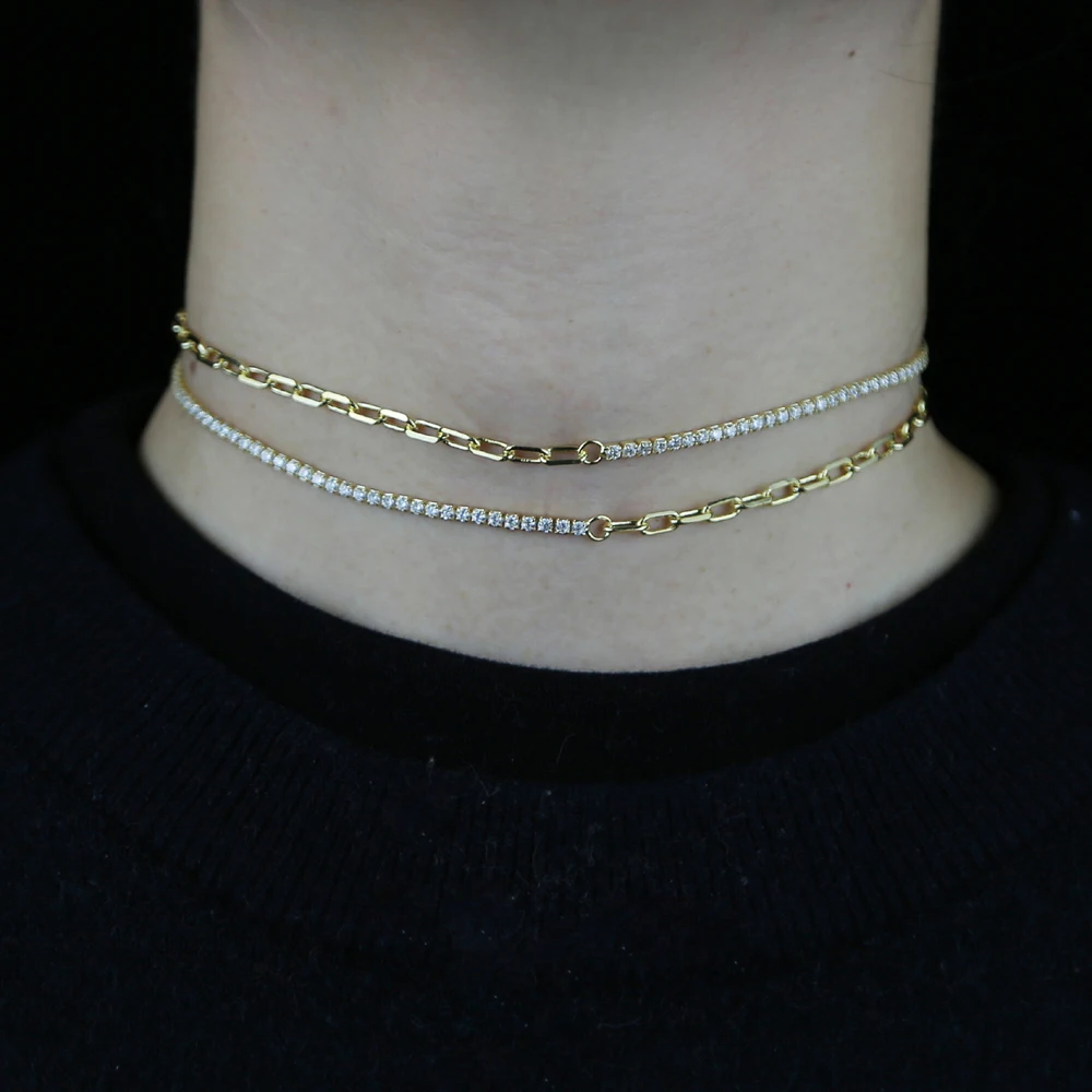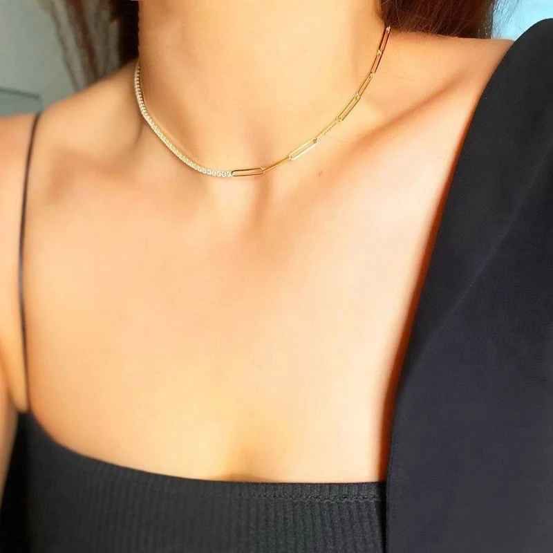 2021 оптовая продажа, модная цепочка с зажимом для половины бумаги, цепочка с кубическим цирконием 2 мм, ожерелье-чокер для женщин и девушек, Очаровательное украшение вечерние ринки и свадьбы