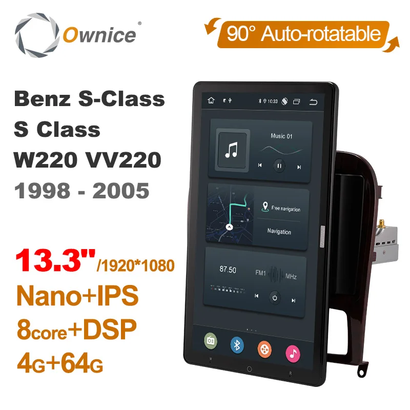 1920*1080 Android 10,0 Ownice 13,3 дюймов вращение 1 Din для Mercedes Benz S-Class S класса W220 VV220 1998 - 2005 радио авто GPS мультимедиа DSP IPS