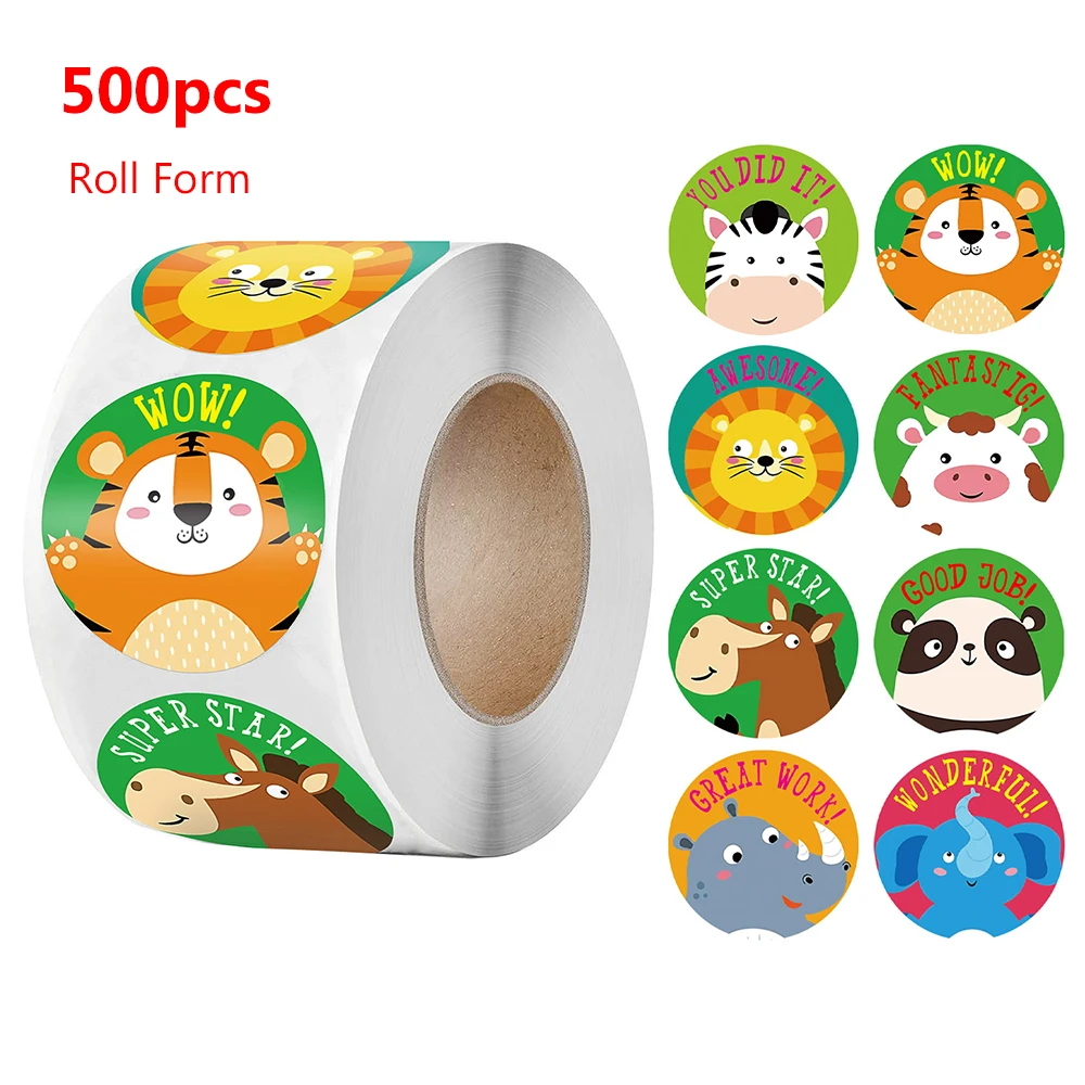 Животные награда стикер для детей 500 шт.рулон 1 дюйм поощрения эти...