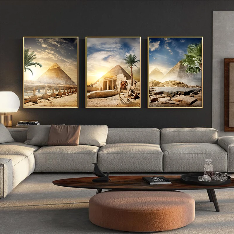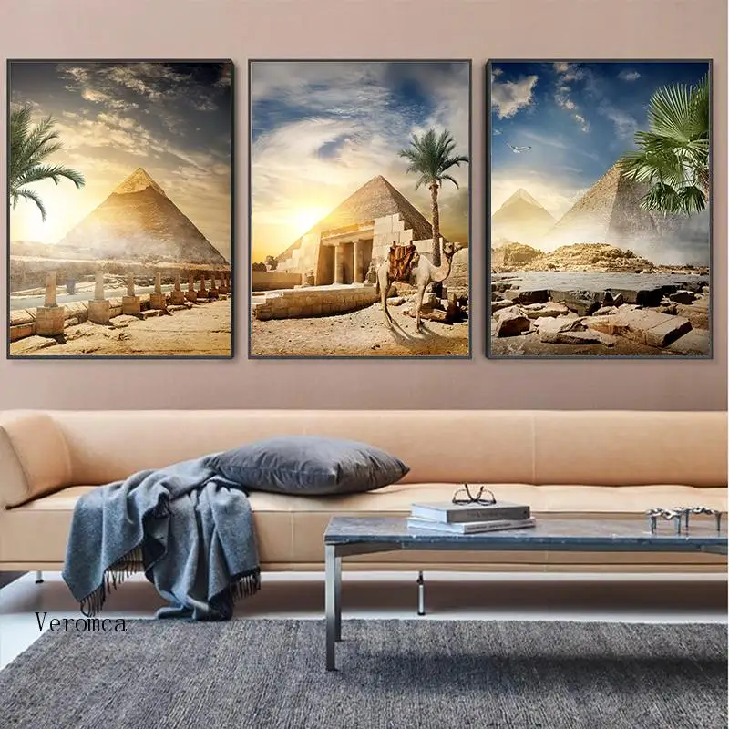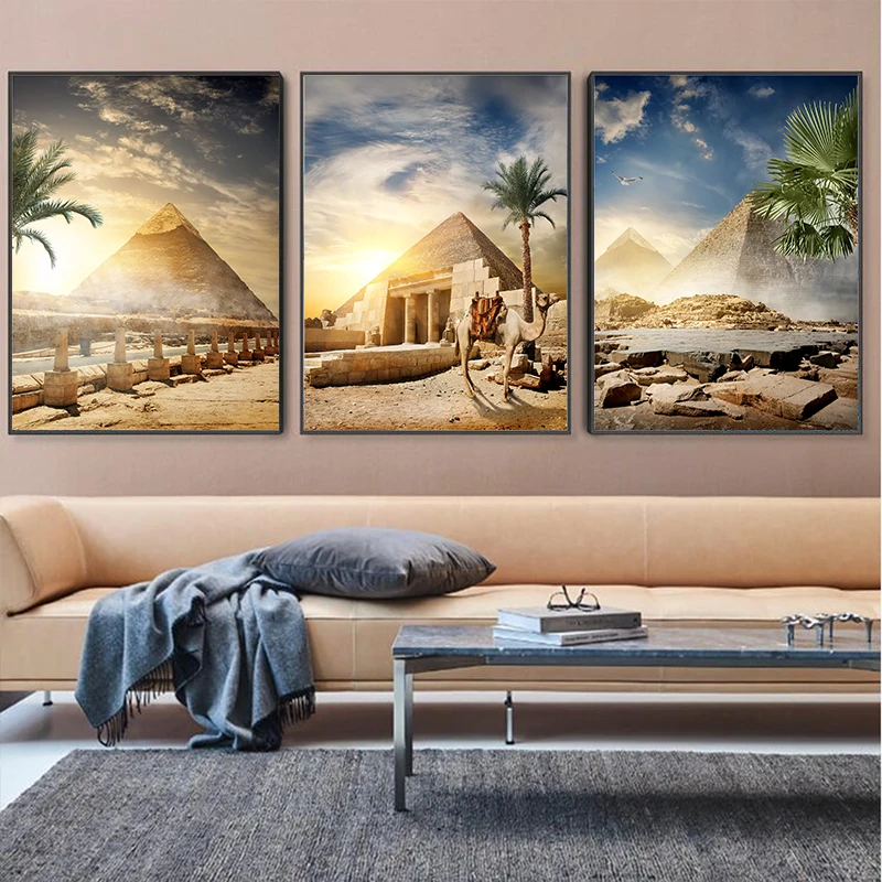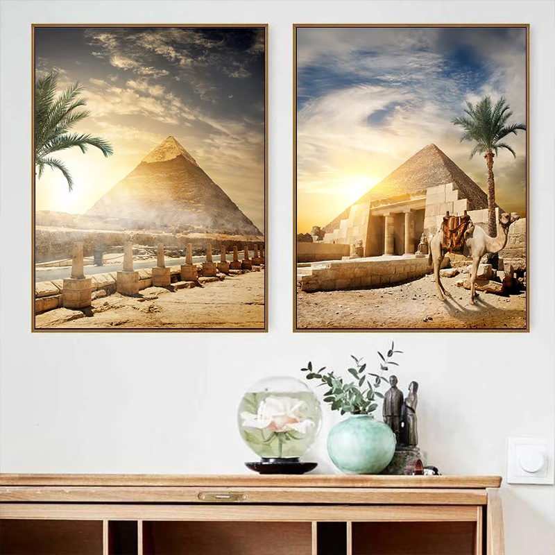 Картина на холсте Пирамида египетская пустыня оазис закат пейзаж плакаты и принты декоративная картина настенные картины для гостиной