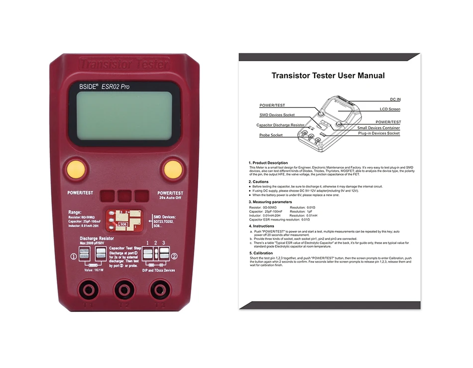 1 x тестовый зажим ESR (требуется дополнительная стоимость)