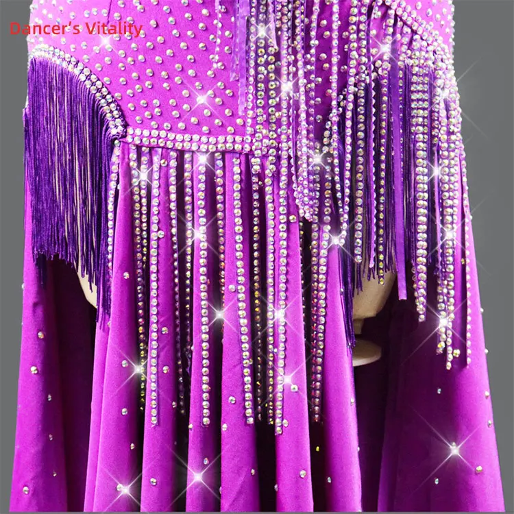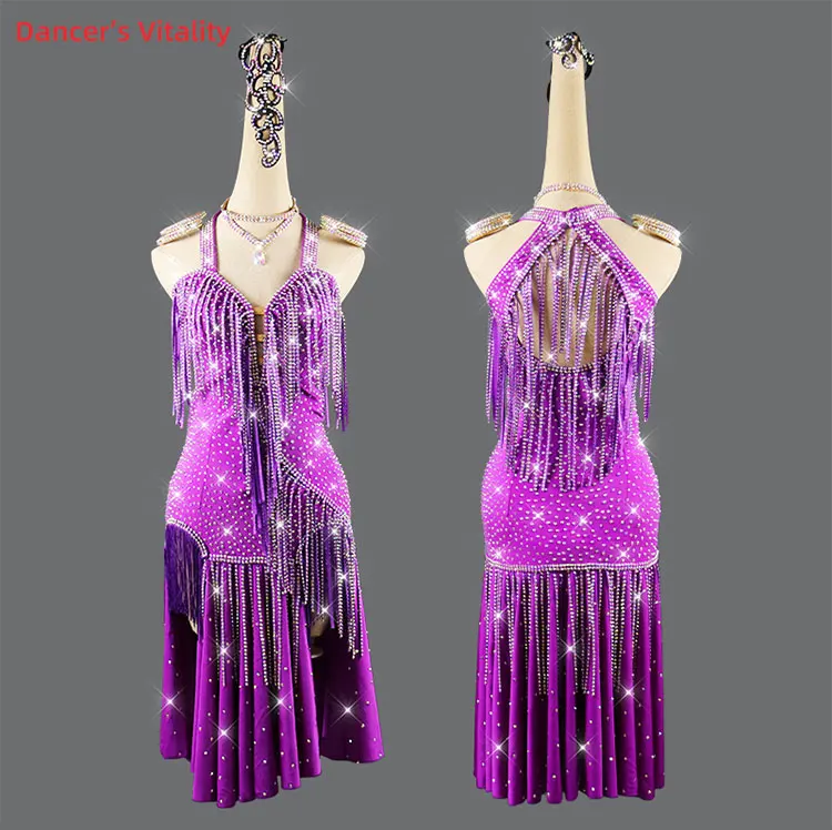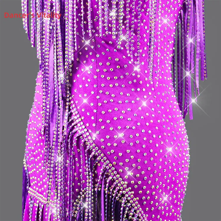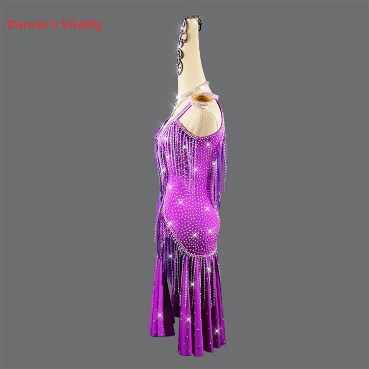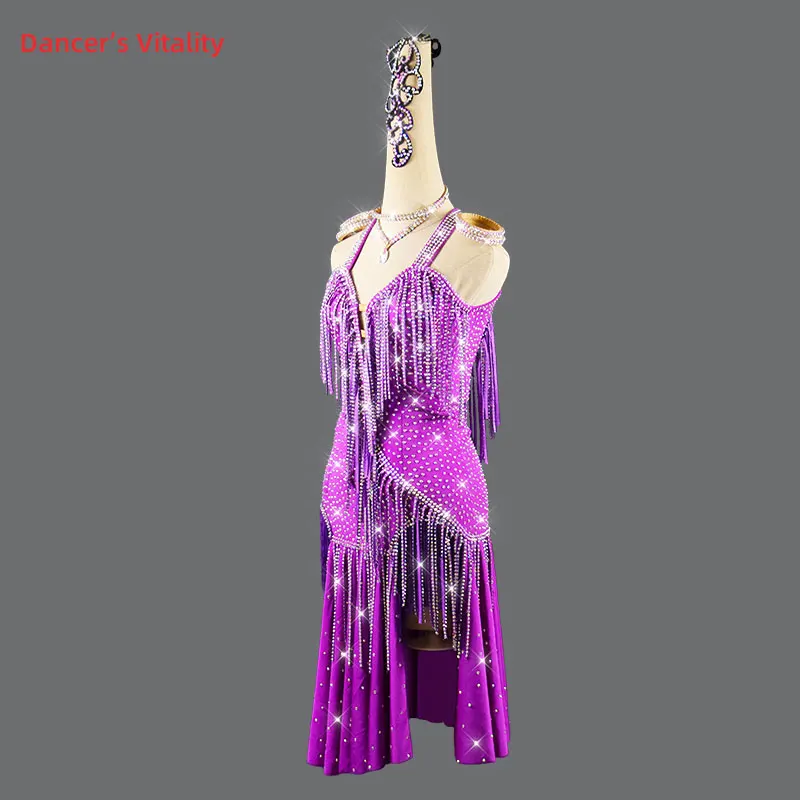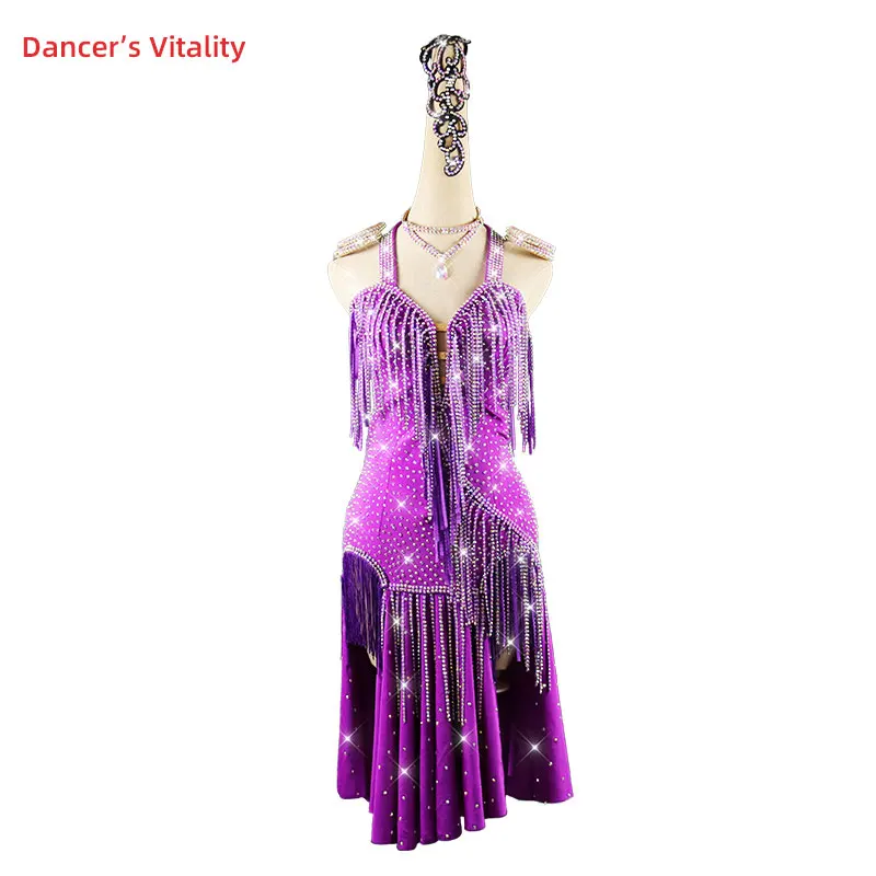 Платье для латиноамериканских танцев, длинная юбка с бахромой и бриллиантами, одежда для выступлений, высококачественная одежда на заказ для женщин, взрослых и детей, одежда для соревнований