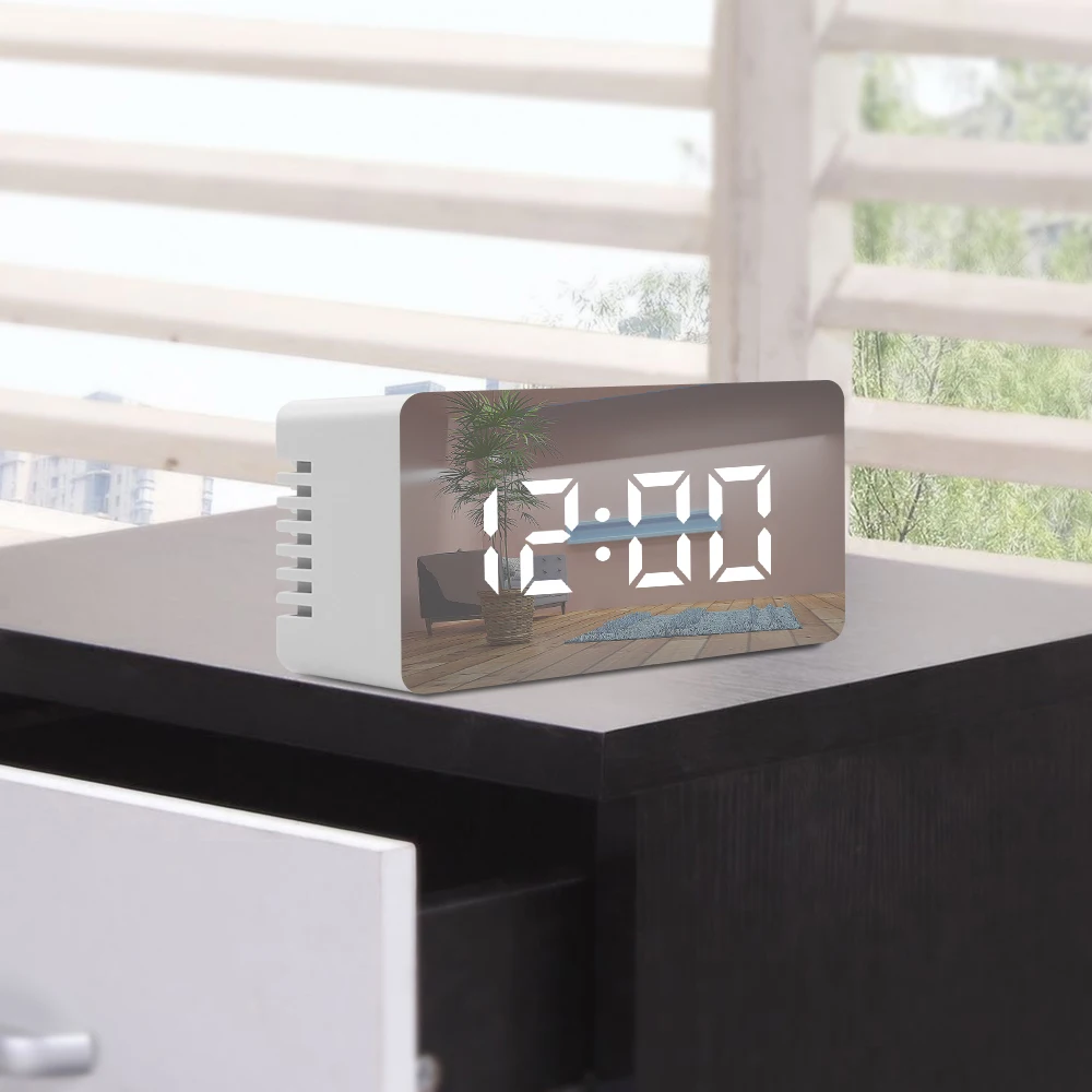 Цифровые настольные часы с светодиодный-дисплеем, зеркальные часы с функцией повтора, термометром, USB и аккумулятором, настольные часы с будильником