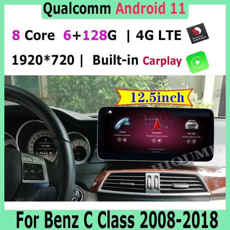 Автомобильный мультимедийный плеер, 12,5 дюйма, Android 11, Snapdragon 8Core 6 + 128G, радио для Mercedes Benz C V Class W204 W205 GLC X253 W446 2008-18