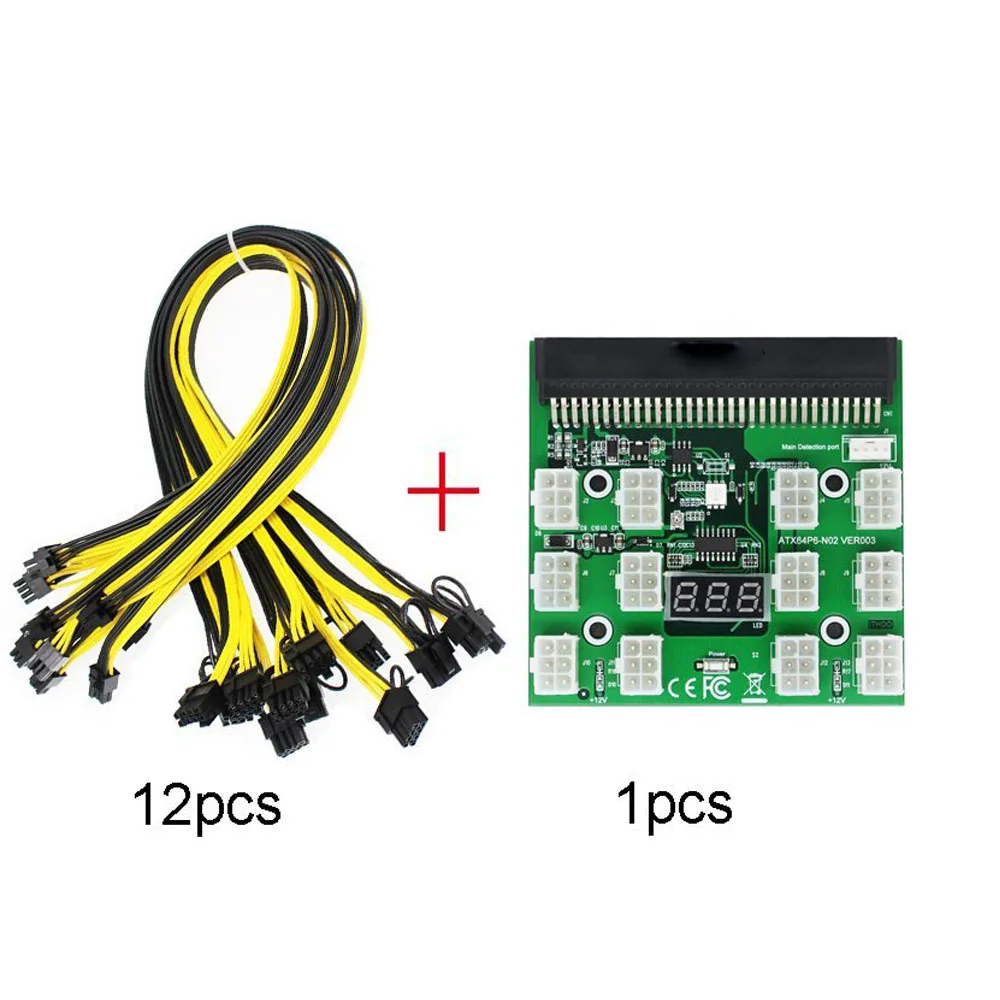 Блок питания PSUGPU, плата блока питания 12 В, устройства Ethereum ETH ZEC, Майнинг-блок питания, 12 шт. 18AWG PCI-E, Кабели 6 + 2Pin