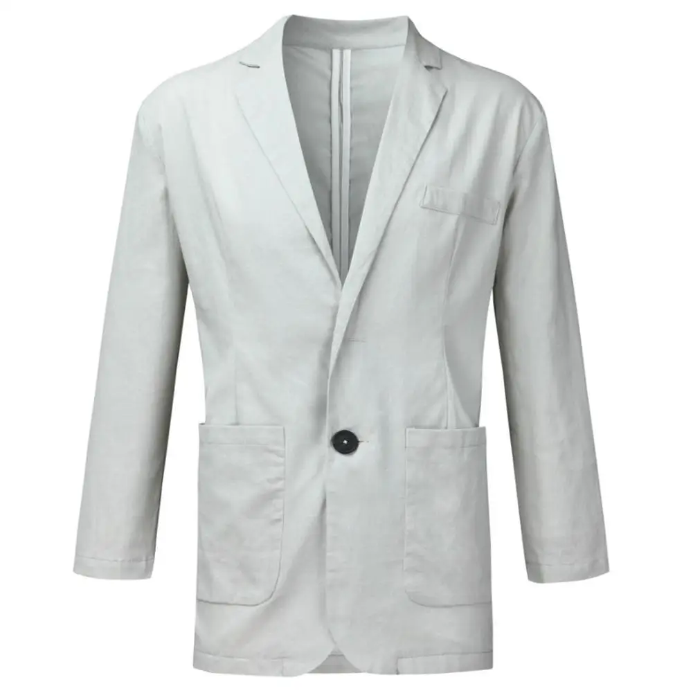 Куртка для мужчин, осенняя однотонная Цвет карманы с длинным рукавом из хлопка и льна приталенного блейзера, пальто куртка мужская одежда 2021 черный xxxl